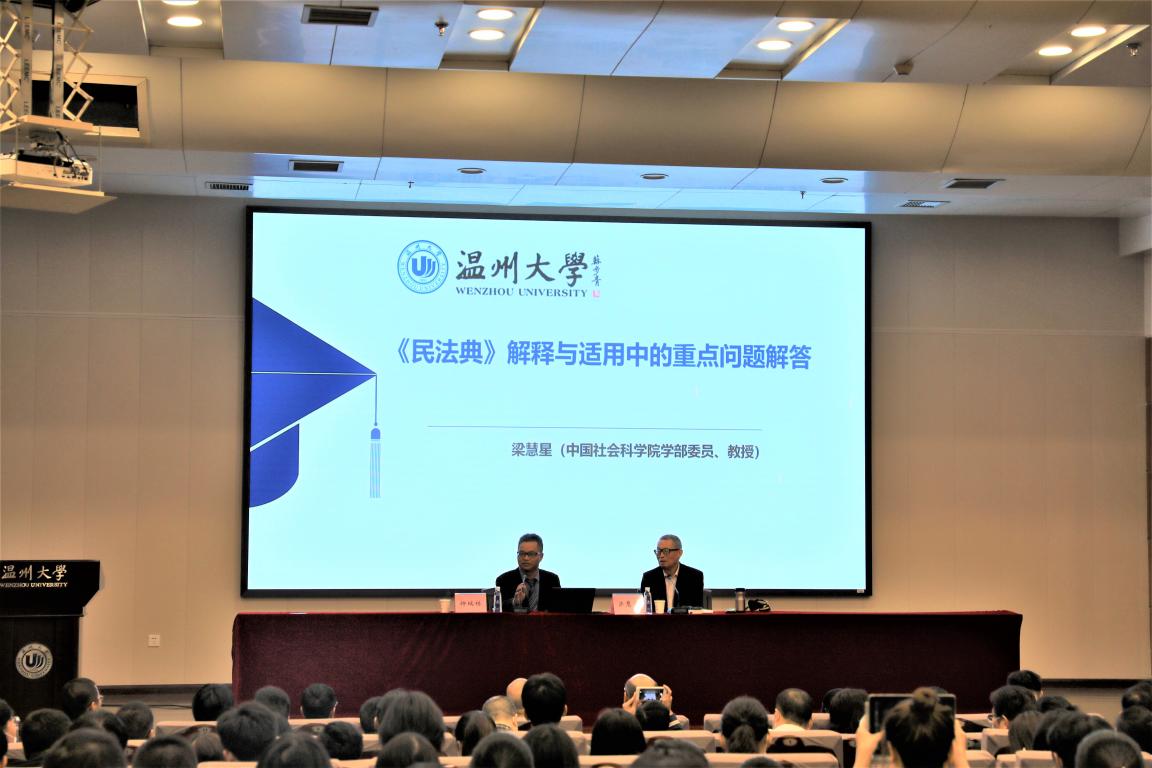 本次讲座系温州法治大讲坛·私法名家论坛第七讲,由温州市政法委、温州市法学会、温州市律师协会和体育博彩平台 主办,体育博彩 私法研究中心、体育博彩 民商法创新团队、体育博彩 图书馆协办,体育博彩平台 钟瑞栋教授主持,全院师生及温州市法律界人士济济一堂,共同领略民法学大师的风采。