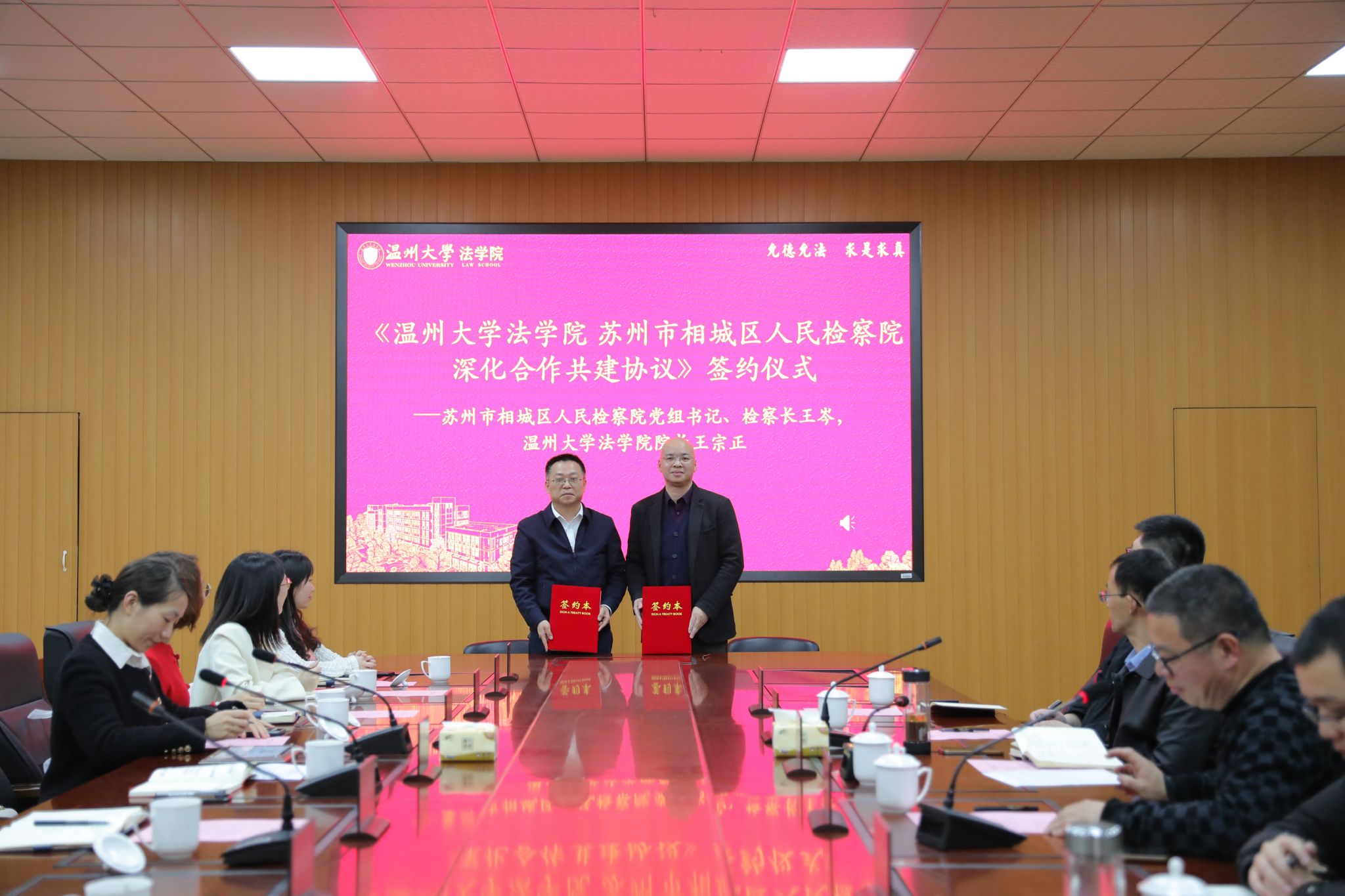 王宗正院长和王岑检察长分别代表校检双方签订了《体育博彩平台 苏州市相城区人民检察院深化合作共建协议》。