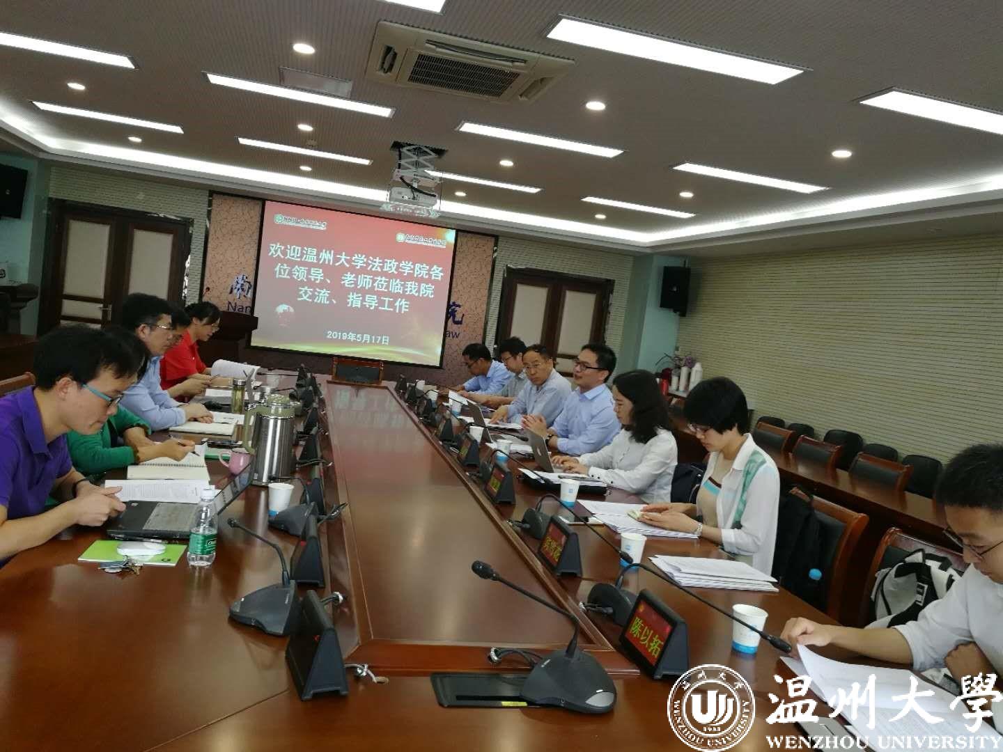 5月17日上午,法政学院副院长缪心毫副教授、法学系副主任谢丽珍副教授等一行八人赴南京师范大学体育博彩平台 考察,并与南师大体育博彩平台 副院长刘远教授、刑法学教研室主任秦策教授等就研究生培养方案进行深入交流讨论。