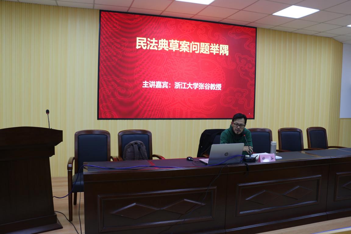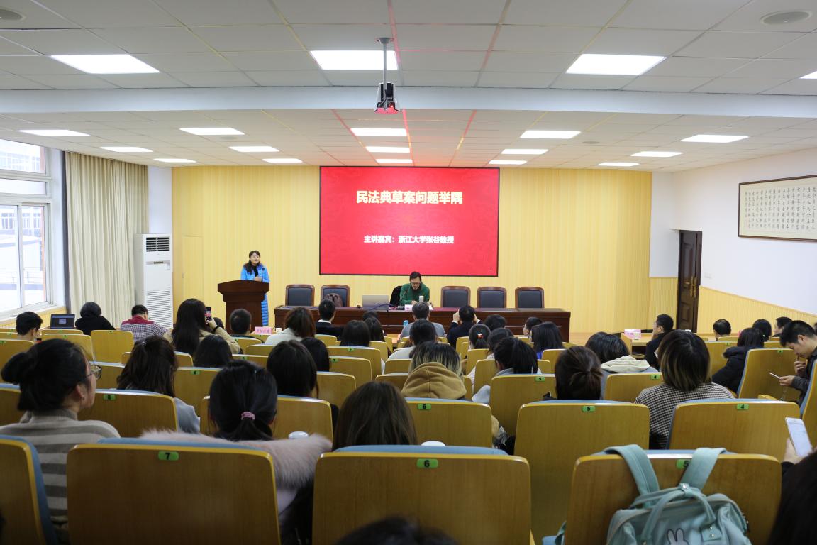 2018年12月14日下午,温州法治大讲坛专题讲座特邀浙江大学张谷教授主讲《民法典草案问题举隅》,体育博彩 法政学院法学系主任何平主持,平阳法院、市律协、学院师生逾百人参加讲座。