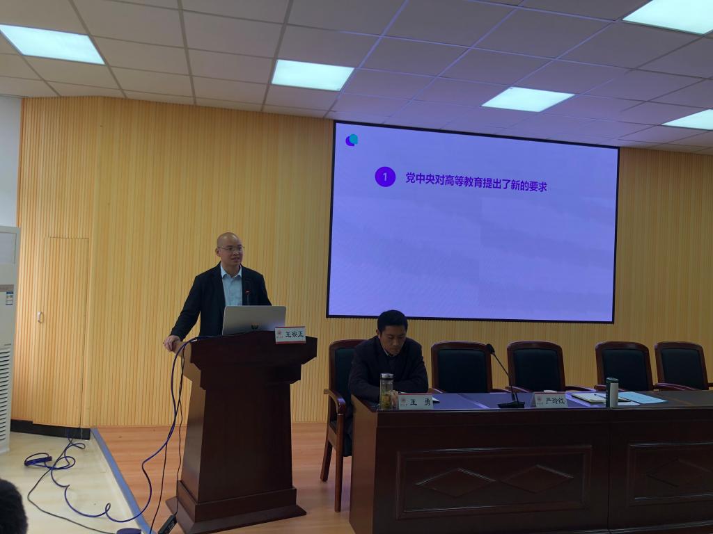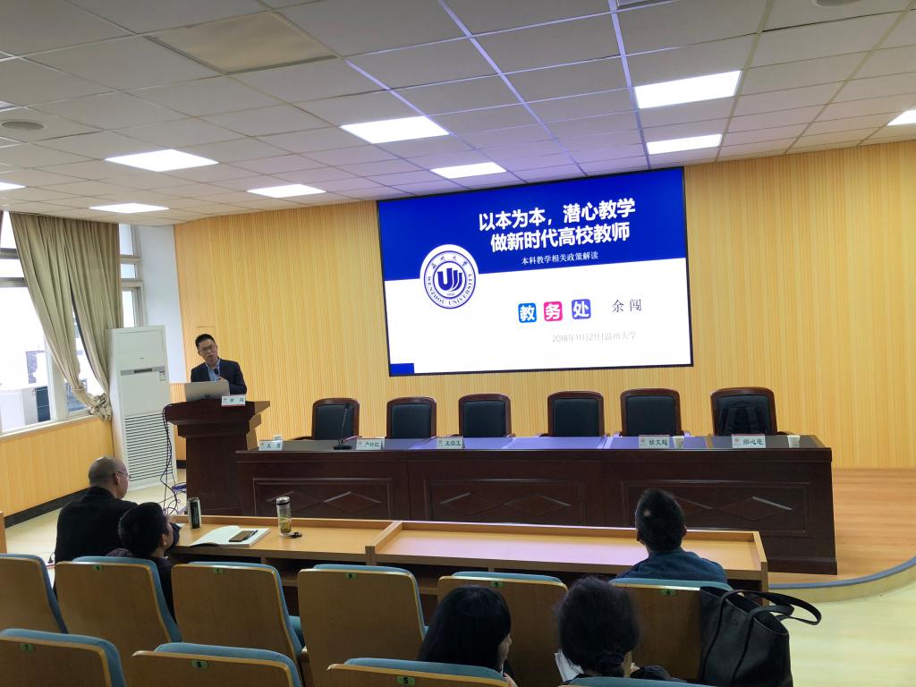 开展相关政策宣讲。余闯处长从学生评教、毕业生满意度和毕业生就业情况等数据入手,全面分析了我校本科教育的现状,并就我校教学相关激励政策措施进行了详细解读,并对教师个人教学工作提了建设性的意见。胡文超副院长从创新创业和学科竞赛工作方面谈了自己看法,并就学校的创业教育支持政策做了详细说明。此次学院邀请学校职能部门负责人深入基层学院宣讲学校重要政策法规的做法,既有利于学校政策的落地,也为教师们教学活动和创业教育活动的开展提供针对性的服务。