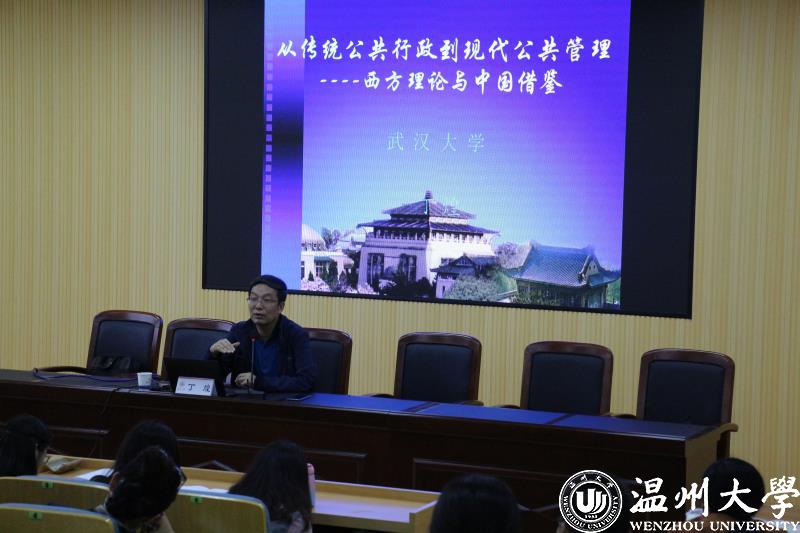 10月14日下午,武汉大学政治与公共管理学院院长丁煌教授来法政学院交流、讲学。丁教授作了题为“从传统公共行政到现代公共管理——西方理论与中国借鉴”的学术讲座。讲座由法政学院陈宝胜副教授主持,我校师生多人前来参加。
