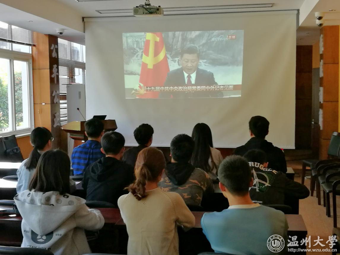 2017年10月25日11时45分,体育博彩 法政学院组织法政团学干部集体收看了十九届中央政治局常委见面会的直播节目。各班同学都积极参加并认真收看了本次见面会,共同度过了十分有意义的35分钟。
