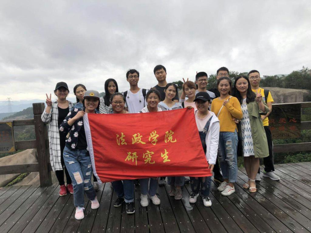 十月十四日,天微凉,细雨。法政学院研一新生在院研会主席和文体部部长的带领下,开启了攀登大罗山的序幕。
