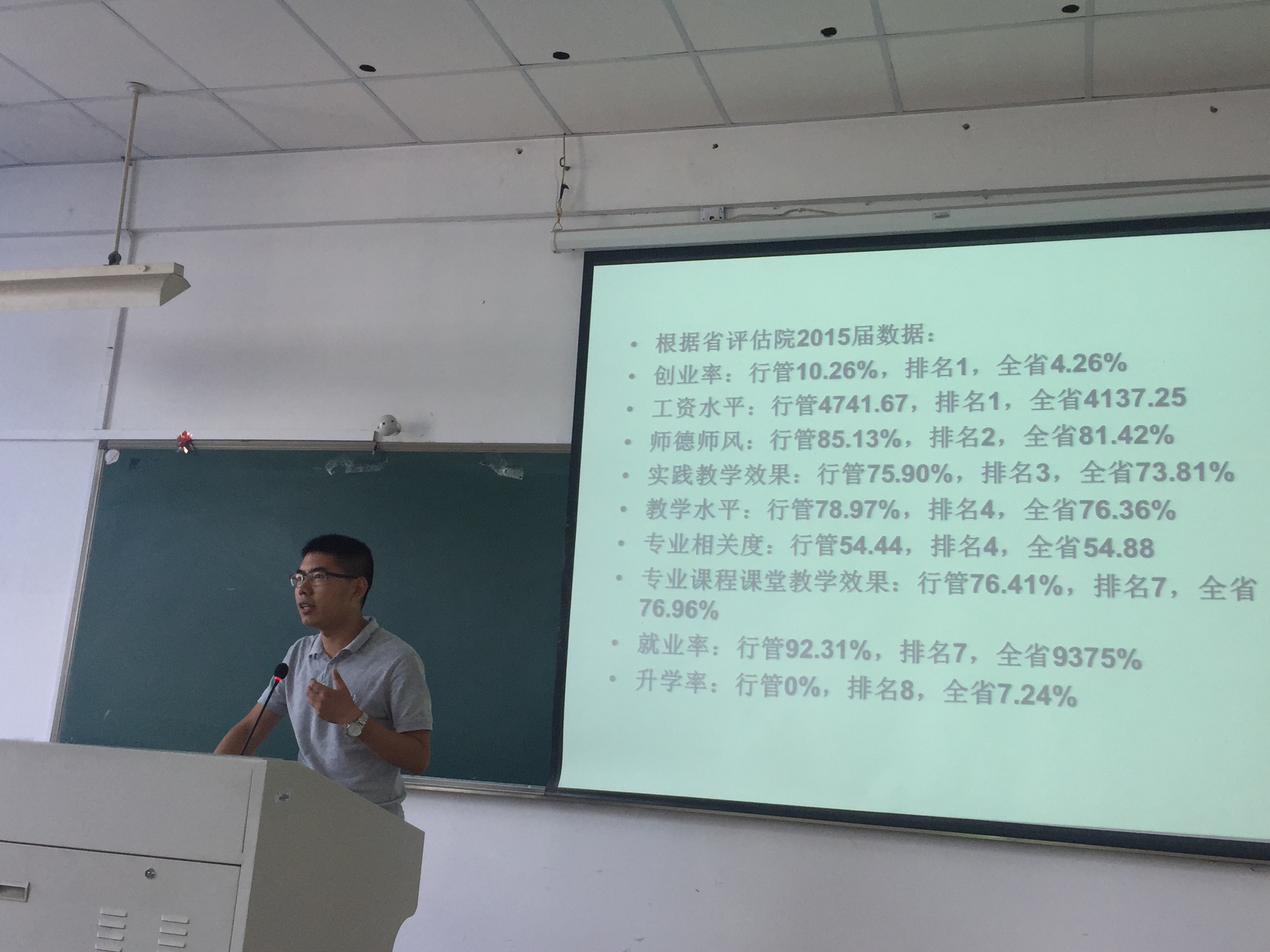 最后,老生代表15法学徐涛、15行管张慧和15行管黄新宇分别作了发言。他们建议同学们选择专业应先充分了解个人性情,从自身兴趣出发选择适合自己的专业,