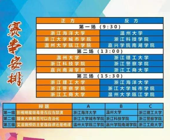 本次辩论赛由浙江省禁毒办、省教育厅、省卫计委、团省委、省禁毒协会联合举办,由浙江警察学院承办。目的在于积极探索运用新形式、新方法开展全民毒品预防教育和防艾教育工作,进一步提高全民特别是在校大学生的识毒、防毒、拒毒和防艾的意识和能力。浙江省内的