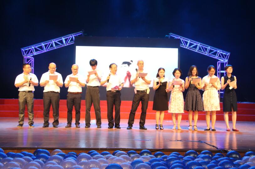 毕业生晚会上自然少不了老师们的节目,老师们先是高歌一曲《最炫民族风》点燃现场的气氛,再是用朗诵表达对毕业生的希冀和祝愿。毕业生们纷纷上台为老师献花和表达最真挚的感谢。而14法二和15行管共同演绎的《小幸运》更是道出了此刻所有人的心声,是啊,与你相遇好幸运,是啊,原来你是我最想留住的幸运。