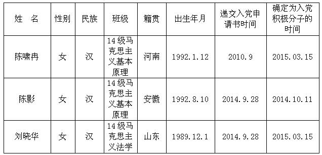 经中共体育博彩 法政学院研究生党支部培养考察,认为以下同志(具体名单附后)已基本具备中共预备党员条件,拟于近期发展,现予以公示。