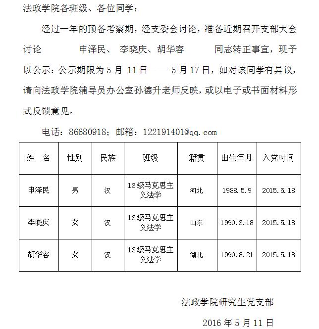 中共体育博彩 党员转正公示