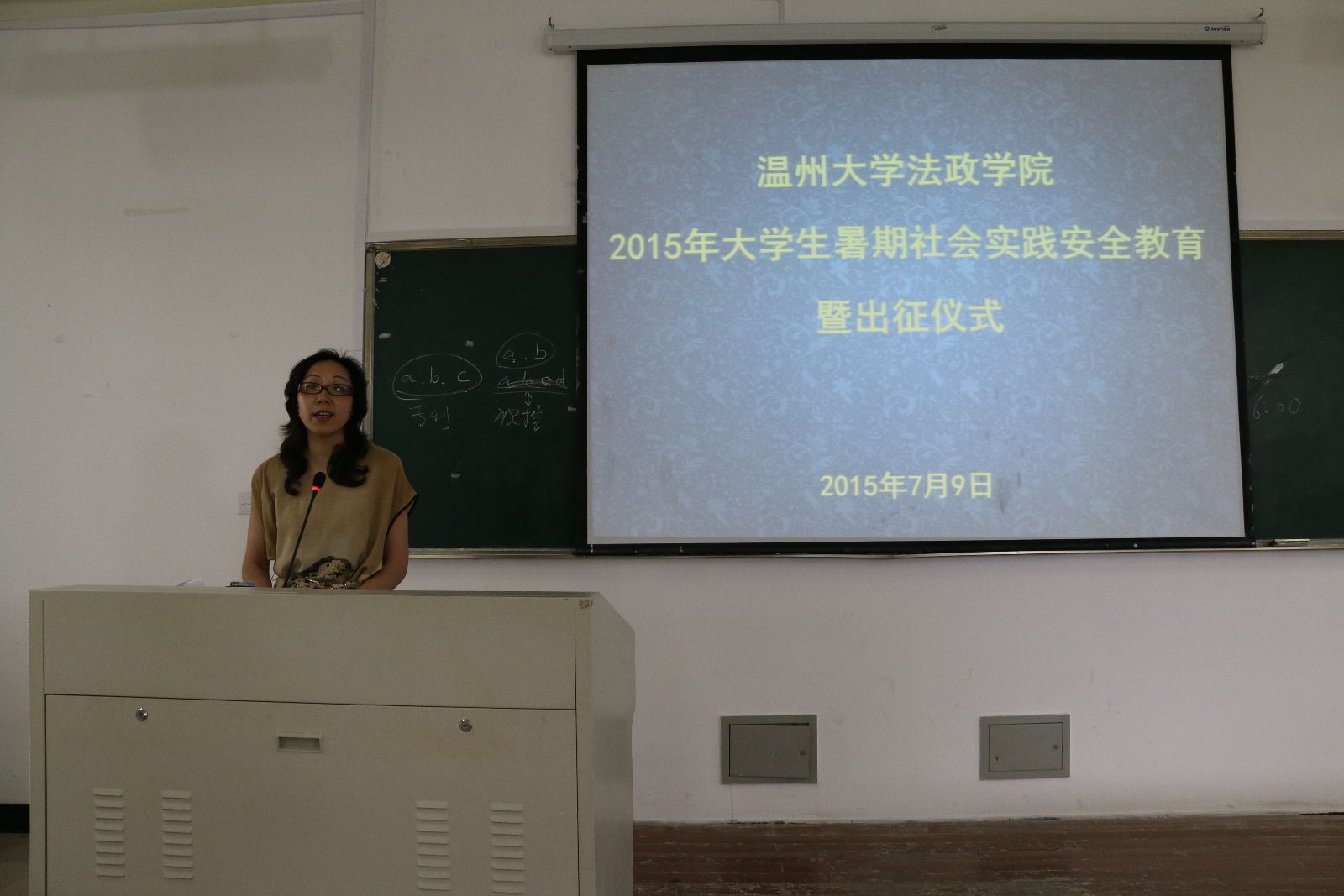2015年7月9日下午,法政学院召开暑期实践安全教育会议暨出征仪式。参加此次启动仪式的有法政学院党总支副书记严玲红、辅导员白昌科老师、法政学院各实践队队长以及14级全体学生。