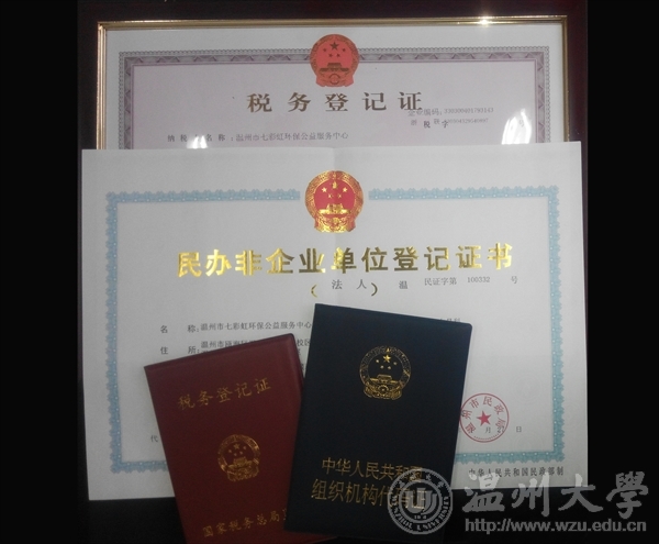 近日,体育博彩 法政学院七彩虹环境法治联盟的大学生环保志愿者在温州市民政局注册登记民办非企业单位,名称为"温州市七彩虹环保公益服务中心",业务范围包括环境保护公益服务活动,承接政府职能转移和购买服务事项。注册后,结合七彩虹社团以往的活动经验和基础,由专职的环保公益人与大学生志愿者共同开展环保公益活动。据了解,这是温州市第一家由大学生环保社团志愿者注册成功的民办非企业单位。
