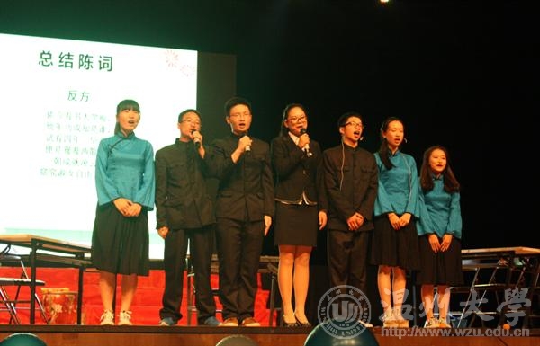 毕业晚会是不仅是欢送法政毕业生,更是师生齐聚一堂、"凝心聚力"的盛会。学院学生科、学生会文艺部精心策划,全院师生倾心准备。各专业及班级同学依次表演了小品、话剧、歌曲、朗诵等类型的精彩节目,学院老师以系室为单位演唱了段段经典老歌,虽然晚会一直带着"毕业离别"的情感,但气氛始终是热烈欢快的,精彩节目引来阵阵欢呼声和掌声。欢笑之余,留给我们更多的是感动,感动于节目中蕴含的难舍的师生情谊和祝福。