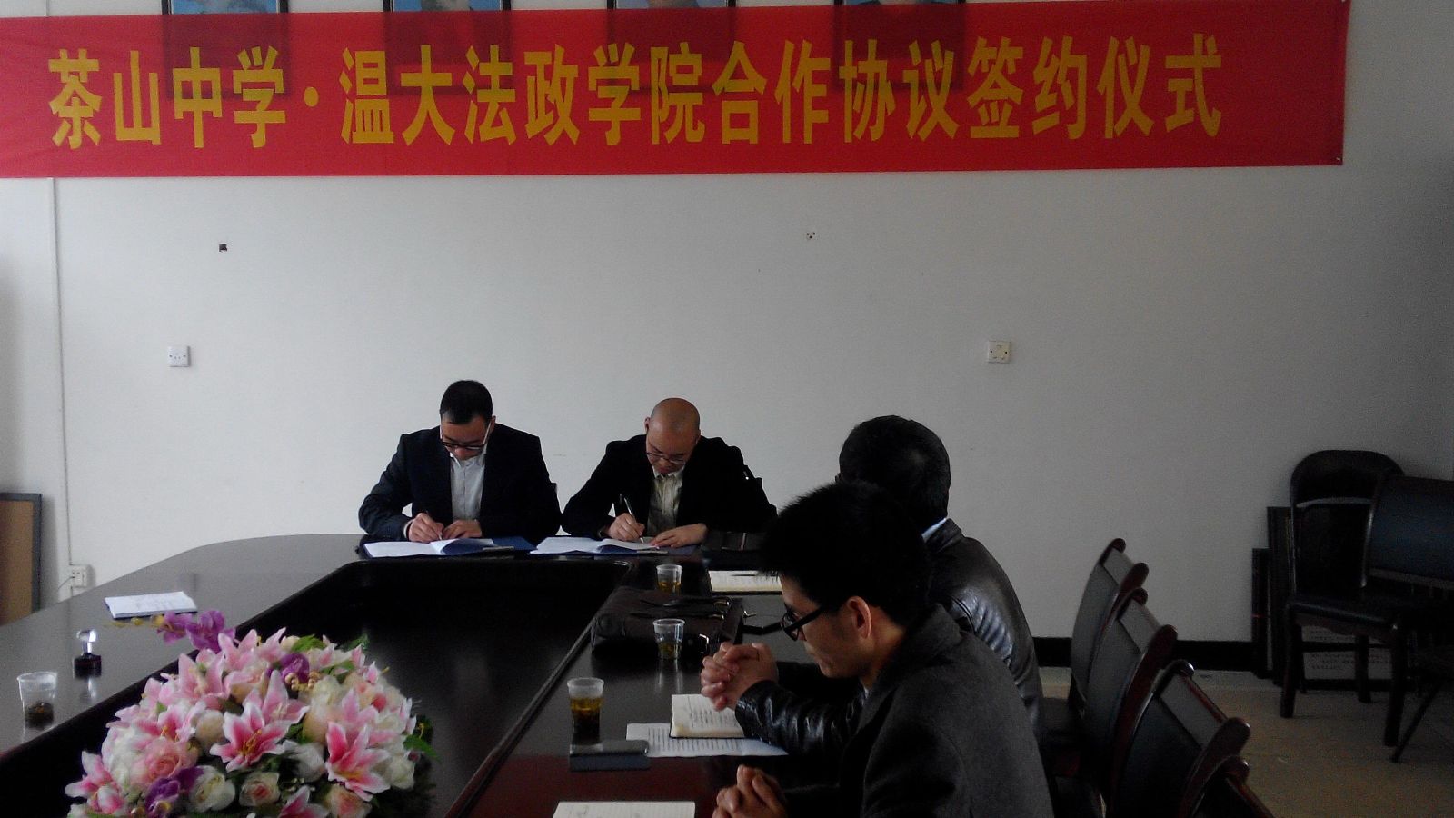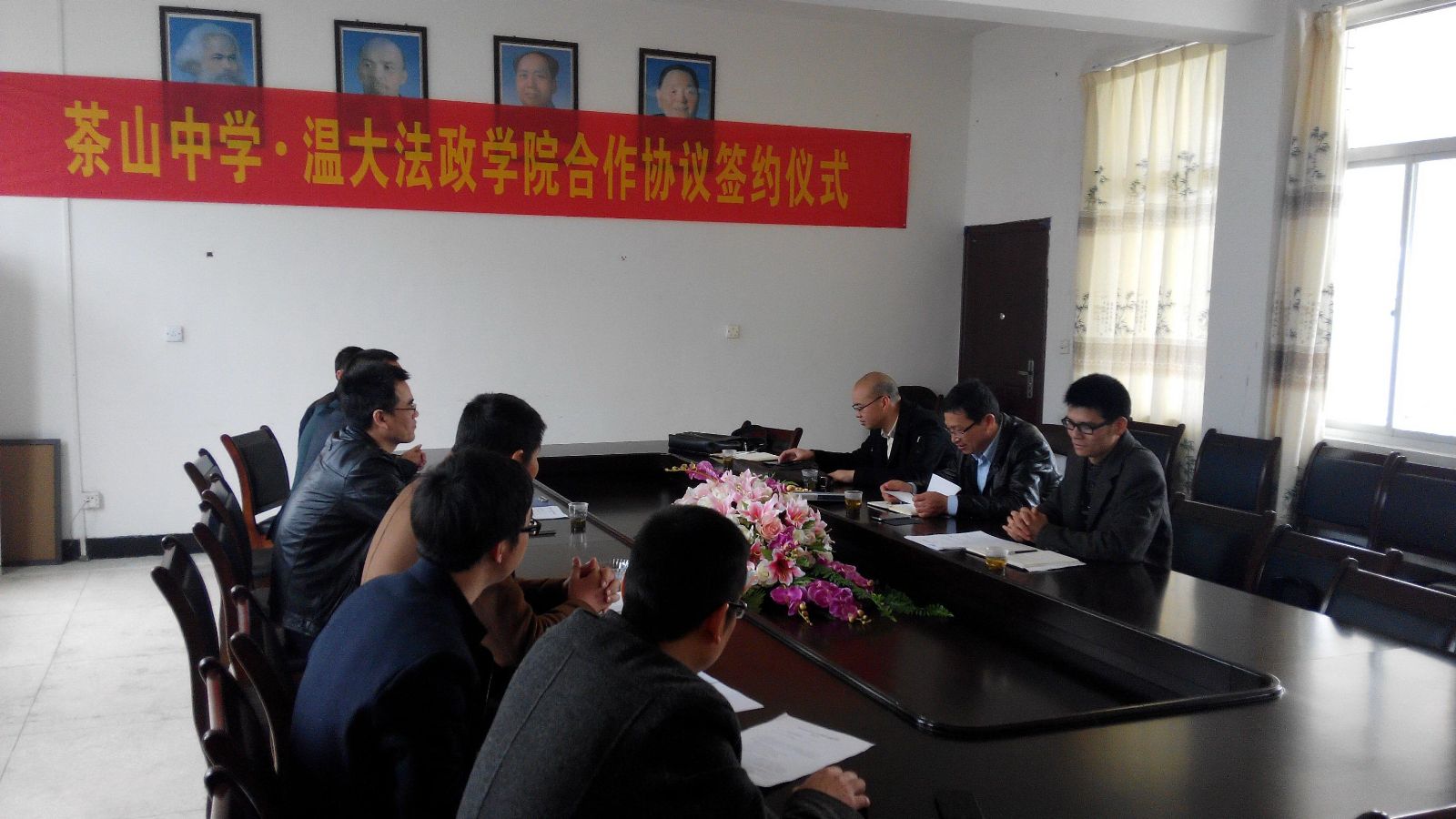 为充分发挥体育博彩 法政学院和茶山中学在学生教育培养方面的互补优势,稳定双方合作关系,进一步提高学生教育培养质量,同时大力发挥学校服务地方发展的作用,2月28日下午,体育博彩平台 王柏民书记、王宗正副院长、思政系主任吴志敏和思政系实践教学指导老师李斌等一行来到茶山中学开展交流,并就双方的学生培养教育等工作与茶山中学签署了一份系列合作协议。茶山中学黄校长、王校长、叶校长及教务、政教、总务、教科研等部门负责人出席了签约仪式。