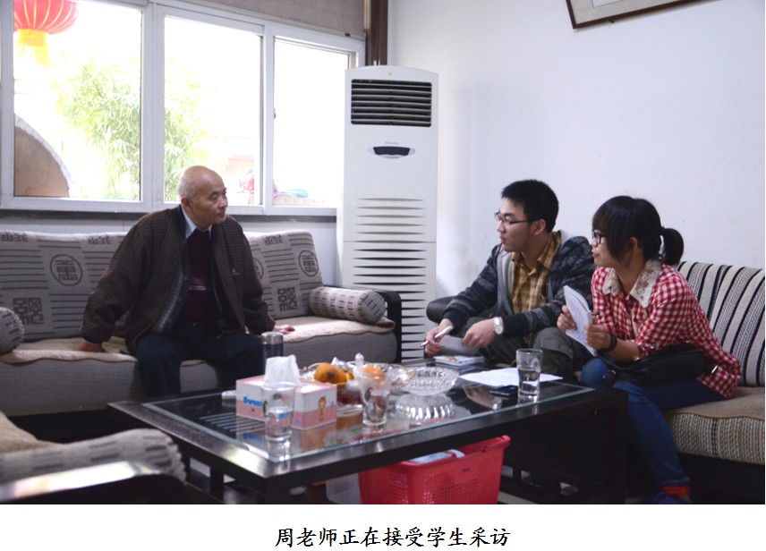 在我们的热切期盼下,周老师乐呵呵地给我们讲述了过去的一些事:"那个时候我们没有你们这么好的条件,什么资料都没有,图书馆、电脑都是几乎见不到的,包括我们看书都很不容易,因为只有简单的教学设施,但是大家都很努力。你们学院的方益权老师、王宗正老师等都是我们那时候的学生,他们那时读书很认真,这一点你们需要向他们学习啊。那时候政治运动比较多,没有你们现在这样的学习环境,当然我们的很多学生也卷入进去过。其实还是很多人说不能宽容这些学生,但是我不这么认为,我觉得应该予以宽容。在我的观念看来,对学生第一重要的是人文关怀和爱护,我们应该指出他们的不足和缺点,而不是一味的去惩罚他们。这点从过去到现在,我一直是非常坚持的,我希望现在的老师们,也能将这一点发扬起来,凸显人文情怀,尽到一个教师所要做到的责任。事实也证明,当时的那些学生非常的优秀,很多都已经有所成就了。"