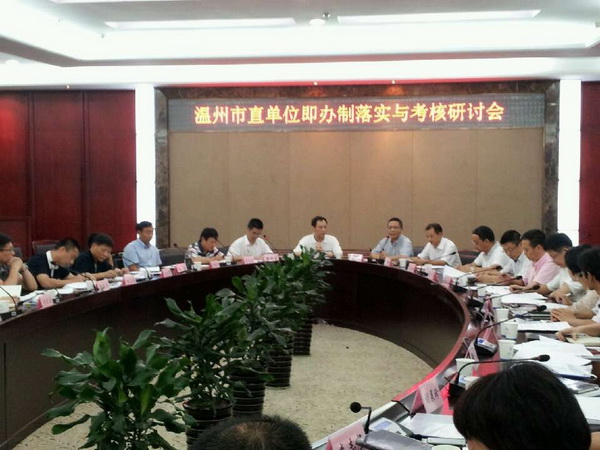 2012年9月25日下午,温州市直单位即办制落实与考核研讨会在我校岩松堂白鹿厅召开。本次会议由体育博彩 地方政府绩效管理研究中心主办,温州市直机关工委承办。