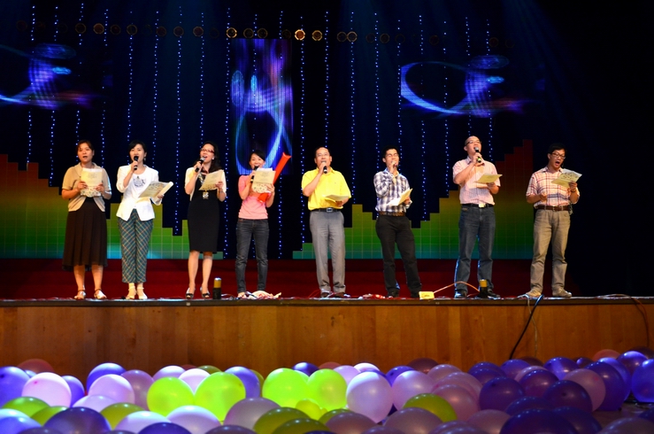 学院领导、老师、演职人员与毕业生合唱留影