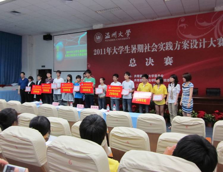 团委副书记屠霁霞担任本次大赛的评委,参加这次方案大赛的共有来自各个学院的10支实践队,大赛的形式是两两PK制,首先由对抗的双方代表对各自的暑期社会实践方案作3分钟的PPT展示,然后由双方代表互相提出对方方案所存在的问题,进行5分钟的现场答辩。比赛过程异常激烈,七彩虹环保维权实践队的丁洪俊、张思橦表现突出,受到了评委老师的高度赞扬。