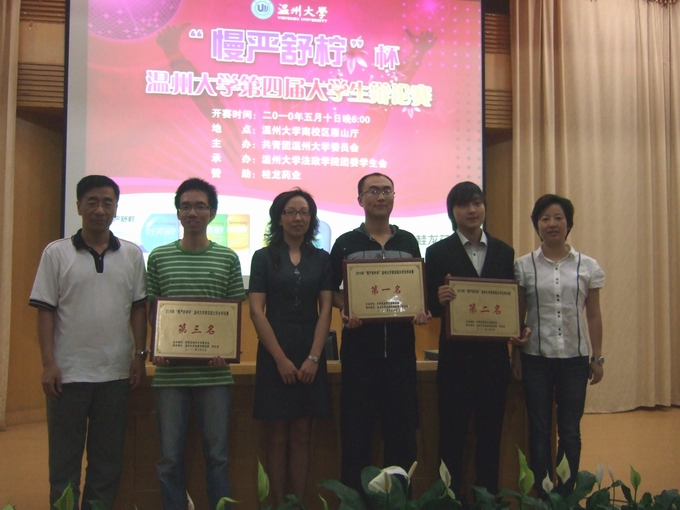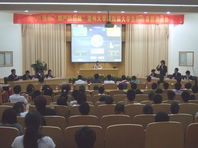 月9日晚,由共青团体育博彩 委员会主办、法政学院团委学生会承办的"慢严舒柠杯"体育博彩 第四届大学生辩论赛决赛在南校雁山厅举行。法政学院党总支副书记严玲红、物电学院党总支副书记陈宏毅、赞助商桂龙药业浙南区张杰经理出席并观看比赛,法政学院学生科孙德升、林丽丽,物电学院学生科张丽艳、孙双等也到场为选手加油助威。