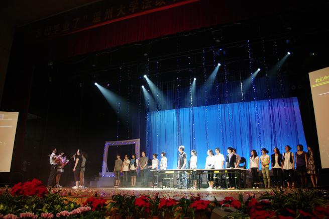 | 在盛夏的阳光下,到处绽开着毕业生的玫瑰花。道声再见,莫忘师生情。美丽的校园,留下了他们青春的足迹和风采。转眼间,"我们毕业了",短短的五个字包含了太多,是不舍,是留恋,是温馨,更是一个新的起点。 追忆青春年华如水 相约灿烂前程似锦 "韬奋钟声,音尤在耳,纵然天涯海角,散各一方,都将万里相伴,让我们再回首,在最初的起点,为最灿烂的青春画上最华丽的句点……"5月23日晚,法政学院全院师生在大学生活动中心演艺厅与06届毕业生齐聚一堂,用一幕幕精彩而饱含感情的节目来回忆四年的生活共话师生情谊。毕业生晚会沉浸着离别的伤感,也弥散着祝福的温馨,每个毕业生淡淡的离愁别绪感染了在场的每一个人。 燃起绚丽缤纷的烟花 回首拔节成长的青春 晚会伊始,学院十佳歌手带来歌曲串烧,无限震撼的开场令场下观众掌声雷动,激情澎湃。此时烟花四起,副院长钭晓东老师走上台,清唱了一首《别亦难》,表达了对毕业生的祝福与不舍,使晚会持续升温。08政本的舞台剧《梁祝》更是将晚会推向了高潮,幽默的台词,夸张的表演,却满载着他们对学姐学长的情谊,希望他们走出大学校园之后都能找到彼此的幸福。之后的游戏"我们的心中的秘密",更是让每个人动容,那些小纸条里承载的不仅仅是青葱岁月的痕迹,更是每个毕业生心中最珍贵的青春。无论是爱的表白,还是冰释前嫌,在这一刻,除了感动,只有珍惜。 相逢是激动人心的歌 离别是催人泪下的诗 《有没有那么一首歌,会让我想起你》,617寝室的全体男生在台上相拥,兄弟之间的那份情谊是那么炙热。方益权院长代表学院为晚会致辞并和学生对歌一首,送上老师对学生的美好祝福。 舞台剧《同桌的你》,是06社本的全体同学在大学的最后一堂课。他们对着班主任集体大喊:"老师,请留步。我们舍不得您,非常非常舍不得您,但是我们必须告诉您,我们必须离开您,我们必须去工作,去谈恋爱,去奋斗,这件事十万火急,我们一天也不能等,请您接受我们离开前最后的问候。"深深地鞠躬,使这位班主任在台上潸然泪下。 用不舍定格离别的镜头 用祝愿抚慰感伤的心情 舞台上缓缓拉开幕布,展示了一些毕业生在校园各处拍照留影的镜头,学子广场的草地,图书馆前的小桥,伴随汗水与友谊的球场,熟悉的课堂,可亲可爱的老师,走过一遍又一遍的小道……这里记录了他们走过的快乐与忧伤,也见证了他们的友谊与爱情。所有这些记忆里的符号都定格成为永恒,贴进青春的记忆册里,作为一生的慰藉。 欢笑与洒脱挥别昨日 责任与勇气承担未来 游戏《非诚勿扰》惊爆全场,三位男孩子用朴实幽默的语言征求12位美女的芳心,他们以一种特殊的方式给四年的大学生活挥手告别。最后,全场以一场激情洋溢的大合唱《明天会更好》表达了对毕业生们深深的眷恋、祝福和同时也是对温大法政美好未来无限的向往。 祝福毕业生,希望他们一路走好,也希望他们牢记"法治天下,政通人和"的理念,并将它带到自己的工作岗位上。
