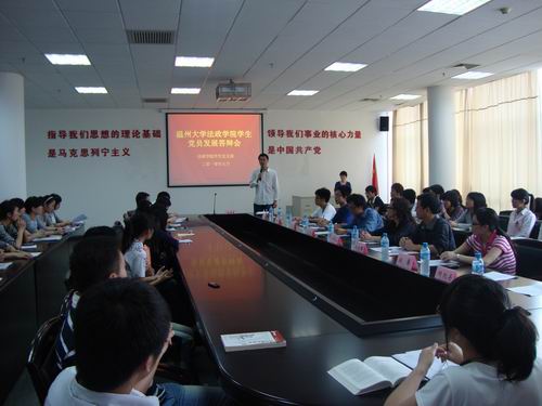 法政学院学生党员发展答辩会。校党委组织部处级组织员张胜帮、院党总支副书记严玲红、院学生科科长杨振海及班主任邱杓丹、张豪莅临现场观摩指导。会议由法政学院法学第二学生党支部书记康顺利主持。 首先,杨振海就此次答辩会的相关情况做了介绍。杨老师指出学生党员发展答辩会旨在促使建党对象加强对党的基本理论的学习和掌握,进一步规范党员发展程序,完善培养考察制度,增强入党仪式的严肃性,提高党员发展的透明度,优化学生党员发展质量。同时也拓宽了学生建党对象的培养教育渠道,扩大了学生党建工作的宣传教育范围,创新了学生党建的教育方式。随后,答辩会依次通过建党对象个人自述、所在团组织推优、入党培养联系人考察意见、答辩环节、群众提问、答辩小组无记名投票等六个步骤对四位发展对象进行了较为全面的考察,高雅南、王丽娜、张巧玲、张若一等四位发展对象均顺利地通过了答辩。最后,张胜帮老师对本次答辩会作了详细的点评指导,他指出答辩会是综合检验发展对象对党的知识、入党动机、思想理论修养、政治觉悟、现实表现等方面表现的一种有效载体,同时也希望建党对象平时要多学习、多积累,以实际行动争取早日加入党组织。