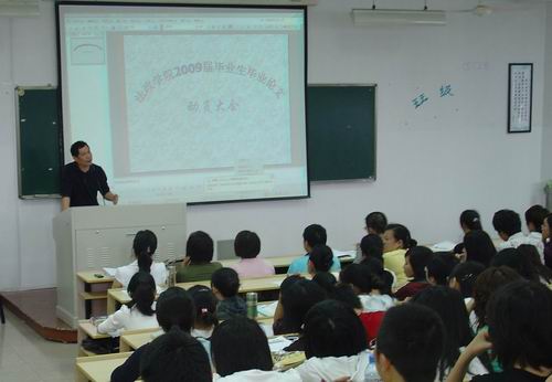 2008年10月8日下午,在北校区2-203,法政学院召开了2009届毕业生毕业论文工作动员大会。会议由主管教学副院长王柏民老师主持。教学科刘雪梅老师在动员会上介绍了本届毕业论文工作安排计划的具体内容和需要注意的特别事项。学院院长蔡克骄教授就如何做好2009届毕业论文工作做了重点强调和要求。蔡院长指出,毕业论文是实践教学重要环节,是对本科学习阶段综合性学习效果的重要检验,同时毕业论文是同学们的创造性学习与创新性思维的体现。蔡院长要求同学们一定要提高对毕业论文撰写工作的认识,态度认真,精力投入,虚心向指导教师学习,出色完成论文撰写工作。会后,各毕业班以专业为单位分别请专家为学生做如何撰写毕业论文的专题辅导报告。