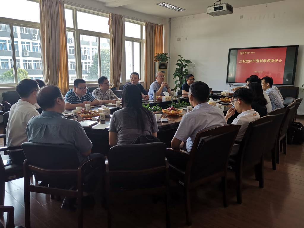 9月10日下午,为庆祝第35个教师节,体育博彩平台 举行“庆祝教师节暨新教师座谈会”,全体院领导出席,十余名近三年新入职教师参会。林钦书记主持会议。