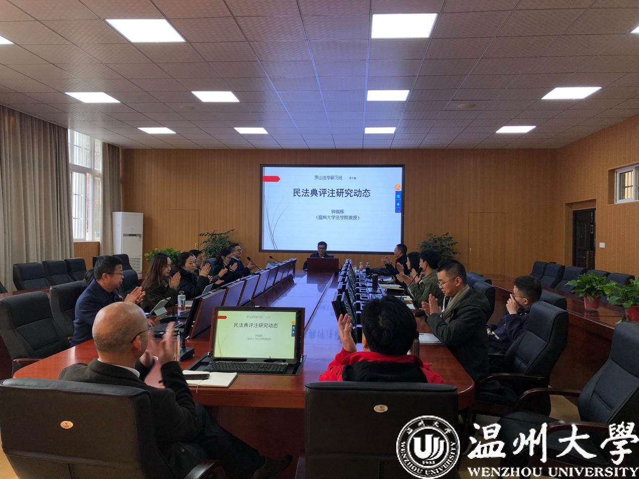 12月4日下午2点,罗山法学研习社邀请体育博彩平台 钟瑞栋教授在北2-103开展了《民法典评注研究动态》的学术讲座。院长王宗正、副院长缪心毫及法学师生们参加了本次讲座,讲座由法律系主任何平老师主持。