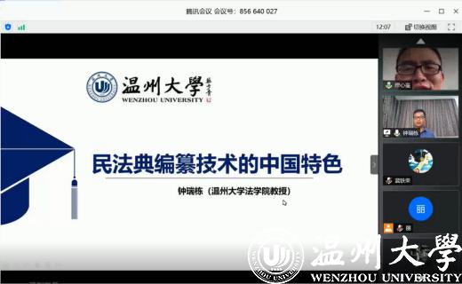5月29日下午2点,体育博彩 罗山法学研习社、体育博彩 私法研究中心邀请体育博彩平台 钟瑞栋教授,以腾讯会议形式开展了体育博彩平台 本学期第一次云讲座——《民法典编纂技术的中国特色》。院长王宗正、副院长缪心毫及体育博彩平台 师生们参加了本次讲座,讲座由副院长缪心毫主持。