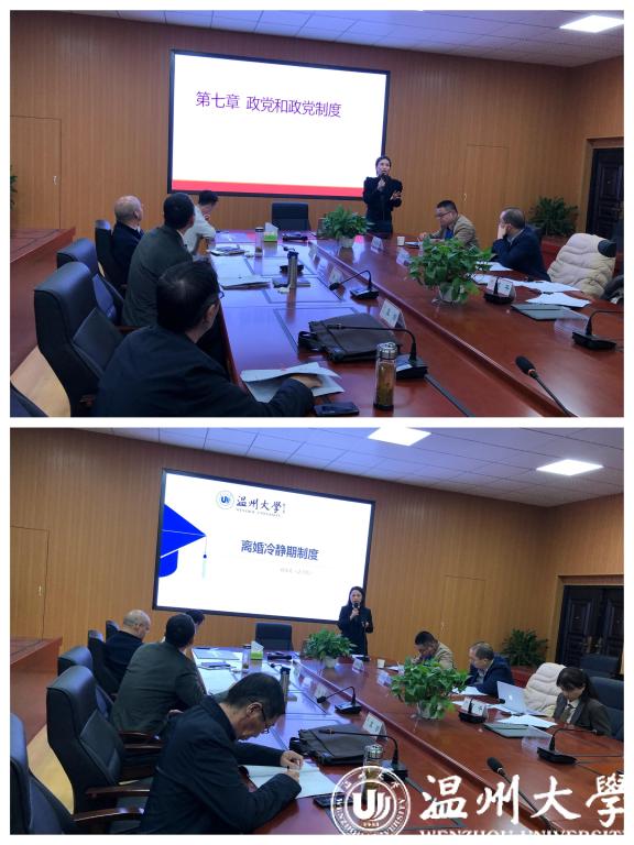 来源:体育博彩平台 发布时间:2020-11-26 浏览量:为引导学院教师进一步强化立德树人理念、锤炼教学基本功,促进教师参与课程教学改革,积极探索有效教学的途径和方法,提高教学业务能力与水平,体育博彩平台 2020年课堂教学竞赛于11月25日在103会议室成功举办。比赛由周湖勇副院长主持,院长王宗正、书记林钦、教学副院长周湖勇、学校督导主任冀桐老师、法律系主任何平、行管系主任朱家德等多位院内外教师担任本次决赛评委,部分老师观摩了比赛。