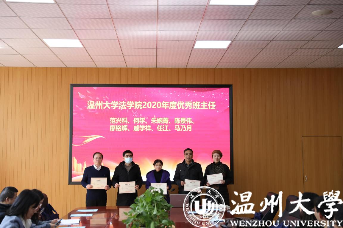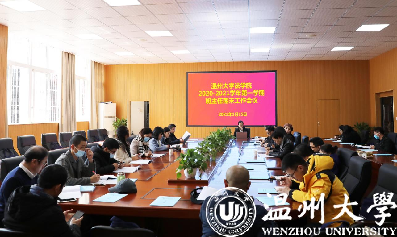 2021年1月15日中午,体育博彩平台 2020-2021学年第一学期班主任工作总结会议在法学楼103会议室召开,学院党委副书记杨振海、学工办主任林丽丽、辅导员和学院全体班主任老师参加了会议。