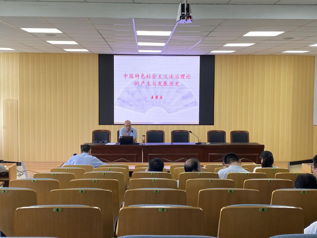 王宗正院长带领全体教工和学生党员学习了中国特色社会主义法治理论的产生与发展历史。他指出,习近平法治思想是顺应实现中华民族伟大复兴时代要求应运而生的重大理论创新成果,是马克思主义法治理论中国化最新成果,是习近平新时代中国特色社会主义思想的重要组成部分,是全面依法治国的根本遵循和行动指南。全体教工在学习后也深刻认识到要不断加强党史学习,要不断地从党走过的风云激荡的历史中、从党开创和不断推进的伟大事业中,深化对党的信赖,坚定对党的领导的信念。