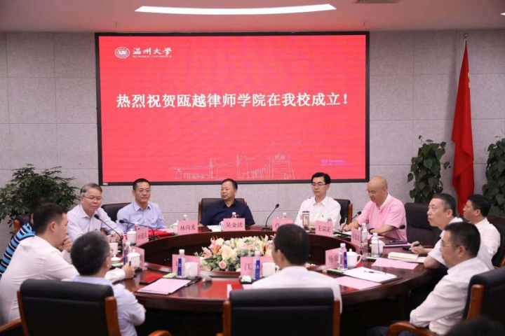 6月1日下午,体育博彩 、温州市司法局、温州市律师协会在体育博彩 南校区岩松堂隆重举行瓯越律师学院协议签约和挂牌仪式。体育博彩 党委副书记吴金法,温州市司法局局长卢斌,温州市司法局党委委员、副局长林向光,温州市律师协会会长叶连友出席仪式。市律协班子成员,温大体育博彩平台 负责人以及相关人员参加活动。