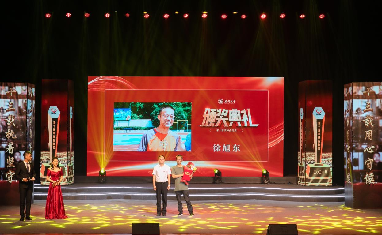 此次徐旭东老师获评2021年华峰品德奖,组委会给徐老师的颁奖词为:“十三载时光逝,十三载坚守存。每周带领学生开展关爱活动,每年带领暑期社会实践队举办快乐营,足迹遍及温州 11 个侨乡,累计服务 8000 余名侨界留守儿童。你的拳拳爱心给侨界留守儿童带来欢乐,你的默默奉献引领学子成长成才。”