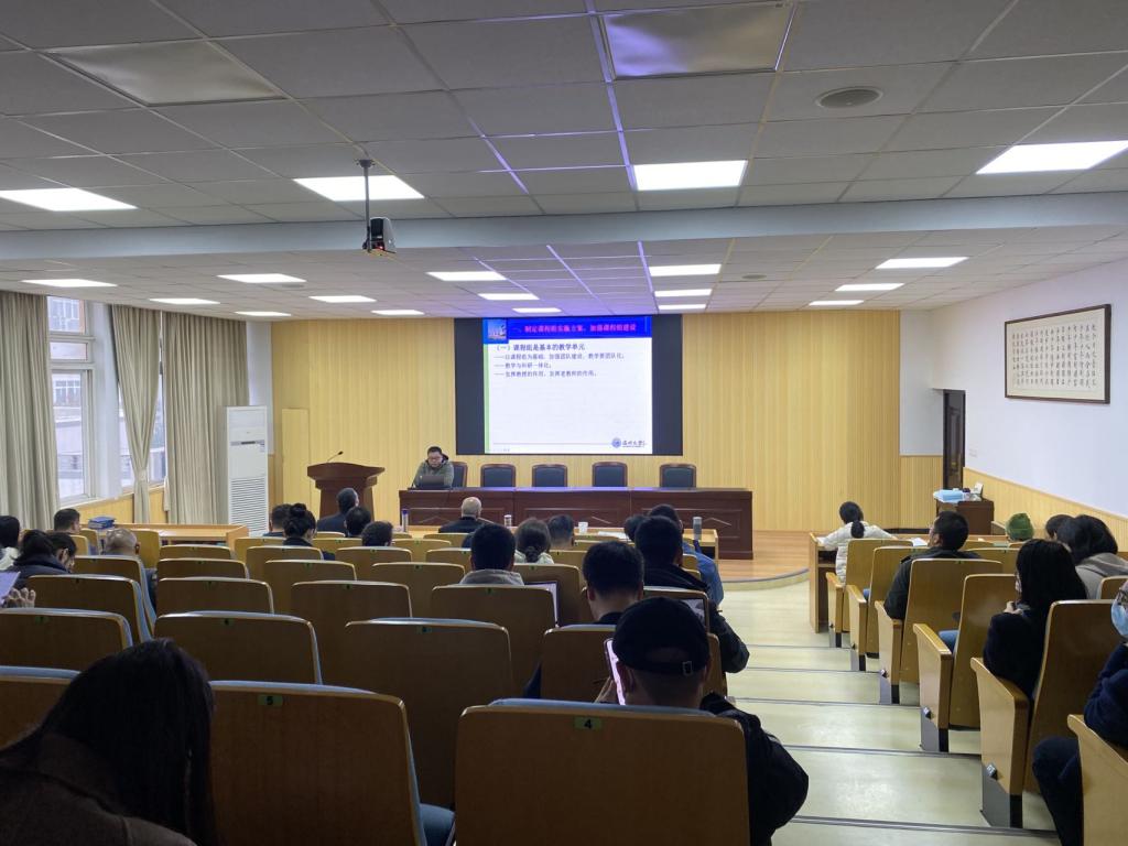 体育博彩平台 副院长周湖勇作新学期教学工作安排。他对课程组建设及全面落实课程思政建设提出了具体要求。要求老师在学科课程的教学过程中,要将价值导向与知识传授相融合,明确课程思政教学目标,在知识传授、能力培养过程中弘扬社会主义核心价值观,将思想价值引领贯穿于教学全过程。