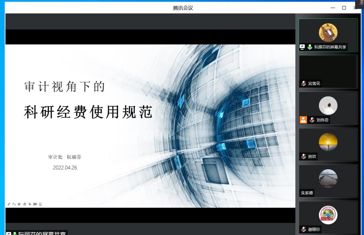 校审计处处长阮丽芬以《审计视角下的科研经费使用规范》为题为体育博彩平台 全体教职工作科研经费的规范使用宣讲。她从科研经费使用的政策依据以及科研经费使用的合规性、合理性、真实性、相关性等方面提醒各位老师应当科学规范地使用科研经费。