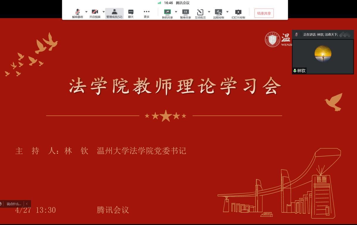 4月27日下午,体育博彩平台 通过腾讯会议召开学院全体教师理论学习会。会议由体育博彩平台 党委书记林钦主持,体育博彩平台 全体教职工参加会议。