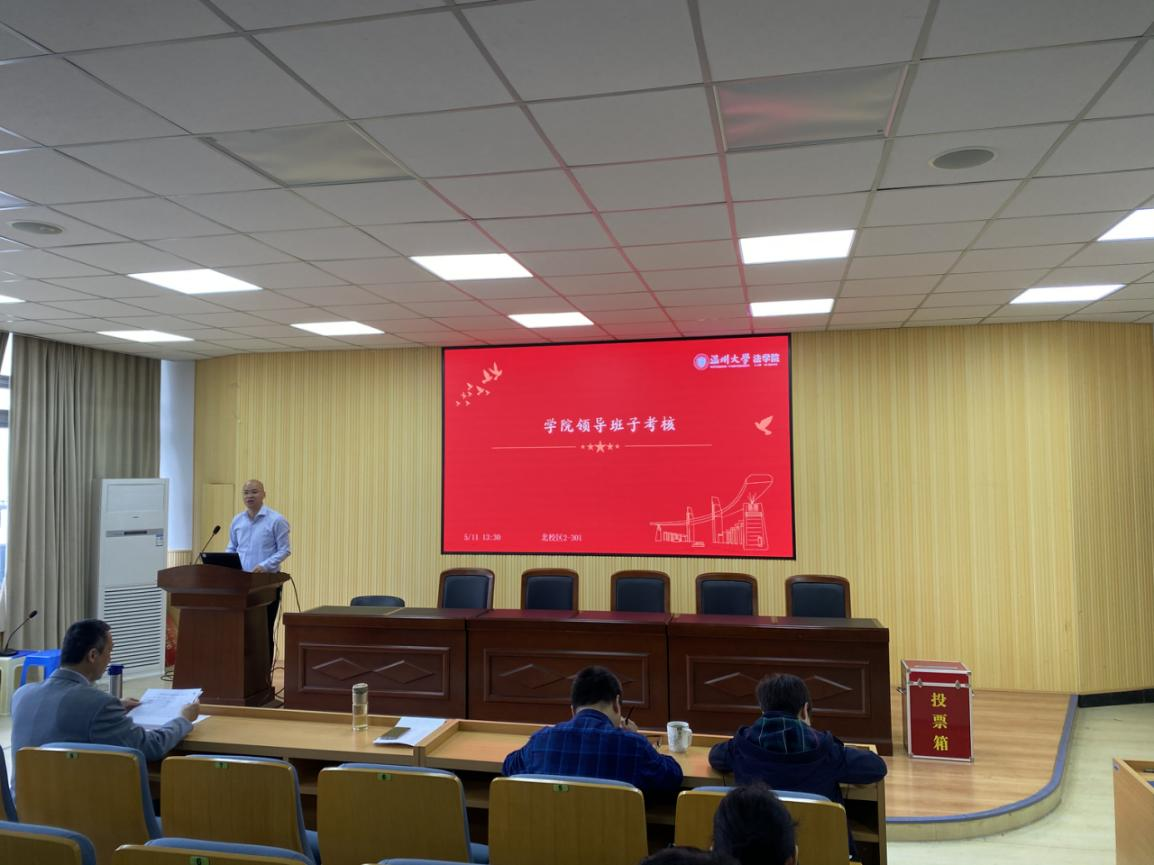 体育博彩平台 院长王宗正和体育博彩平台 党委书记林钦作干部述职,学院科级以上干部考核材料已在学院网站公示,全体教工根据述职材料及平时实际表现,对干部进行了测评并投票。