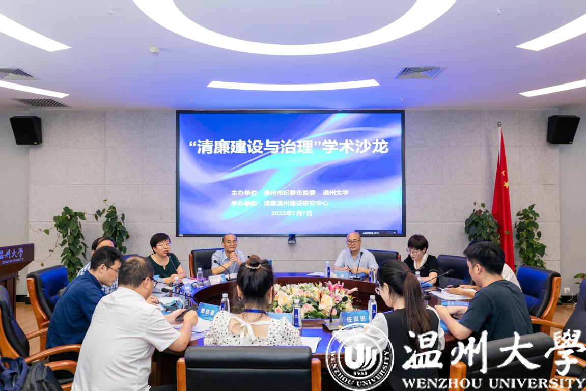 7月7日下午,由温州市纪委市监委与体育博彩 联合主办、清廉温州建设研究中心承办的“清廉建设与治理”学术沙龙活动,在体育博彩 南校区岩松堂展示厅开展。