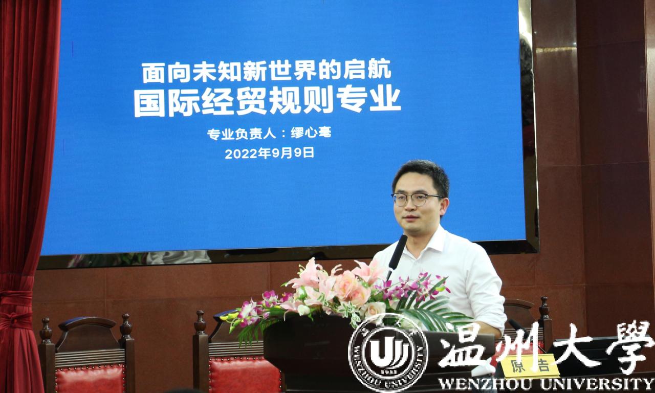 法学与国际经贸规则会场由法学专业负责人李勇军老师主持,副院长周湖勇老师对体育博彩概况 、温州法学专家及法律案例、师资和学生概况等几个方面进行介绍;国际经贸规则专业负责人缪心毫老师介绍了国际经贸规则专业的课程设计、学科融合背景以及人才培养目标等内容。