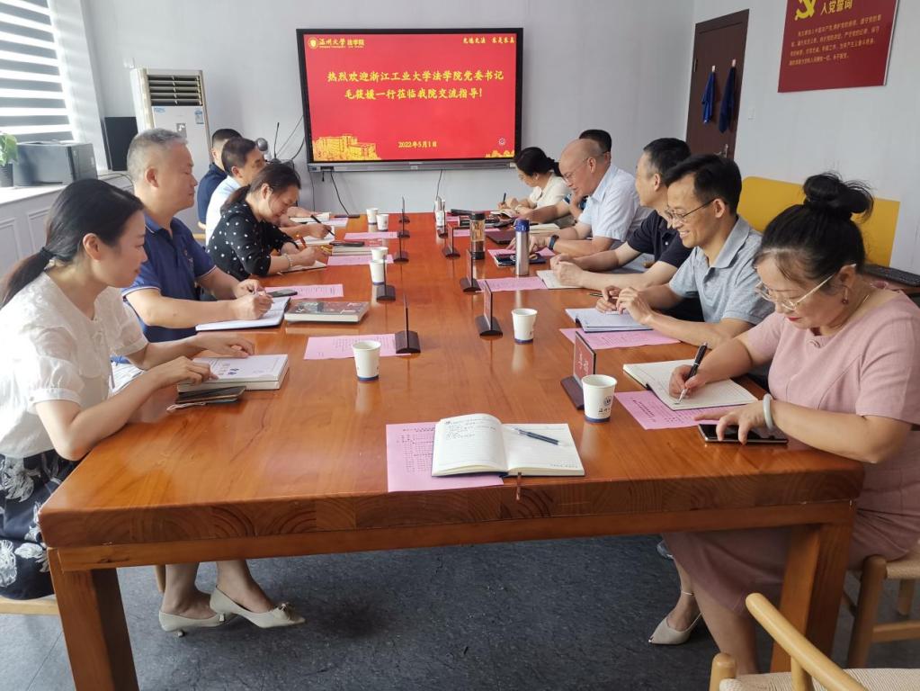 9月22日下午,浙江工业大学体育博彩平台 党委书记毛筱媛、副院长张友连、证据实验室主任吴习彧、办公室主任高周荣等一行莅临体育博彩平台 交流座谈,学院院长王宗正、党委书记林钦、副院长周湖勇、民商经济法系主任李勇军、法律系主任谢丽珍、国际经济法系主任李娟、办公室主任刘小芬等出席座谈会。