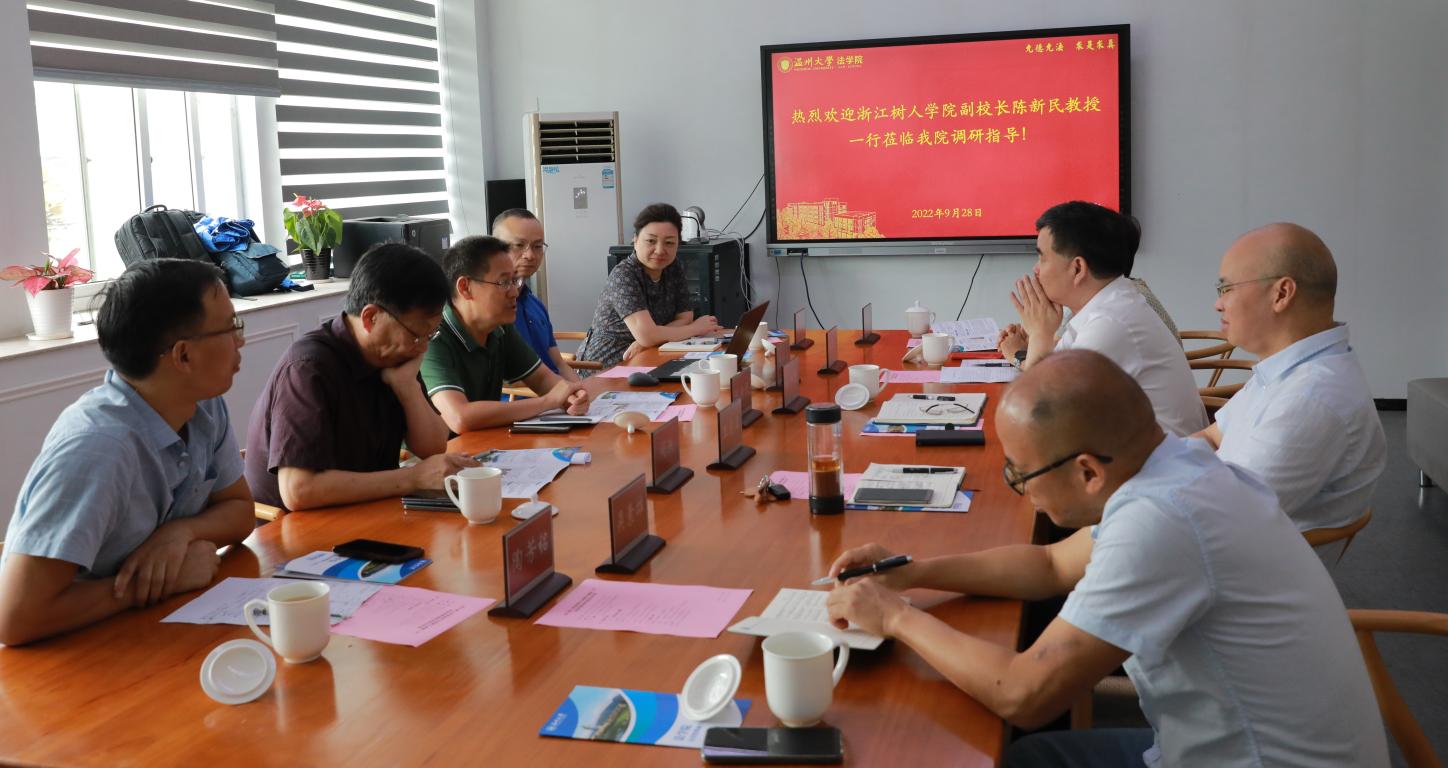 9月28日上午,浙江树人学院副校长陈新民、学科建设与发展规划处处长周朝成、管理学院院长阎洪、现代服务业研究院执行院长朱红缨、管理学院公共管理系主任陶芳铭等一行莅临体育博彩平台 调研,了解体育博彩平台 公共管理硕士(MPA)学位点申报与建设成功经验以及研究生培养与管理等情况。体育博彩 副校长徐和昆、体育博彩平台 院长王宗正、体育博彩平台 公共管理硕士学位点负责人付翠莲、体育博彩平台 行政管理系主任吴素雄、体育博彩平台 研究生秘书胡亚玲出席座谈会。
