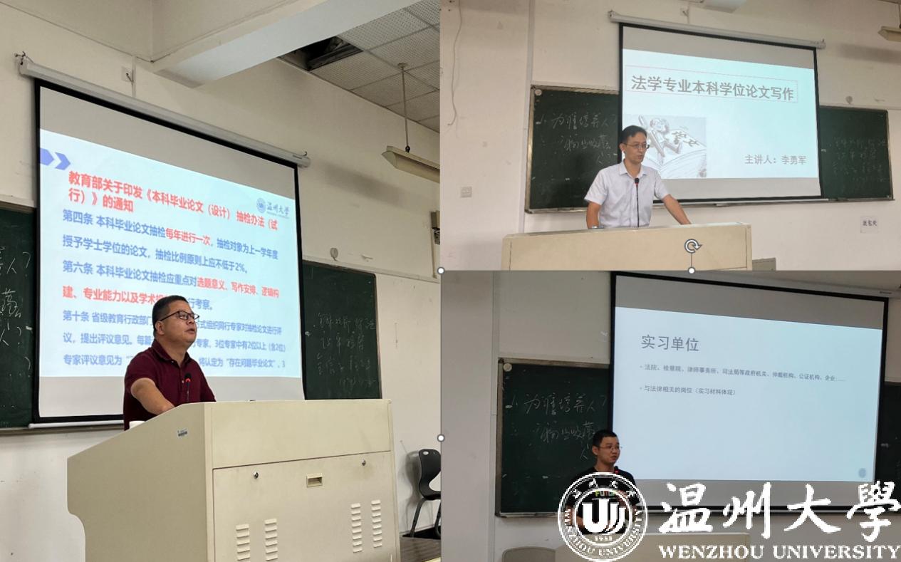 9月28日,体育博彩平台 在学院203教室召开2023届法学专业本科毕业生毕业论文暨专业实习动员大会。体育博彩平台 副院长周湖勇老师、法学专业负责人李勇军老师、法学实验实训中心副主任柯宇航老师作主题发言,全体2019级法学专业本科生参加大会。