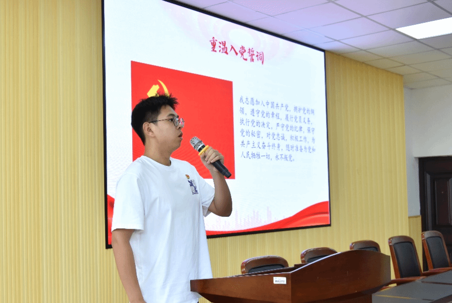 会议第五项议程,由本科生第二党支部毕业生党员毛欢同志领誓,带领全体毕业生党员重温入党誓词。