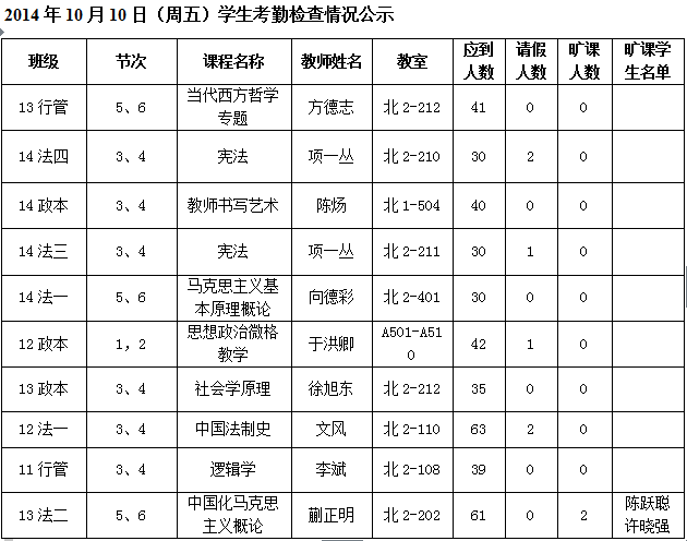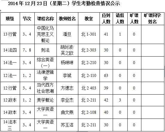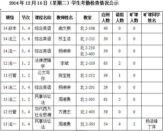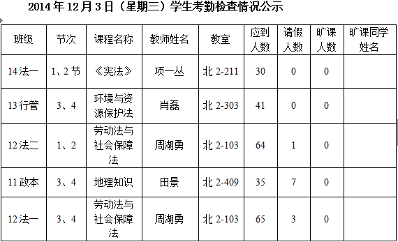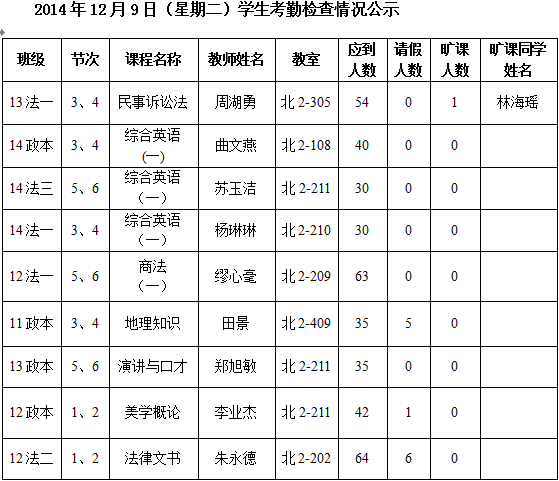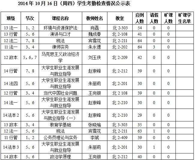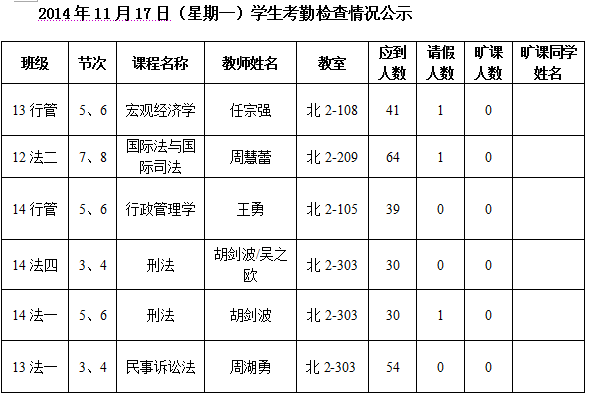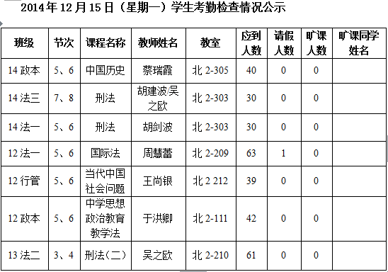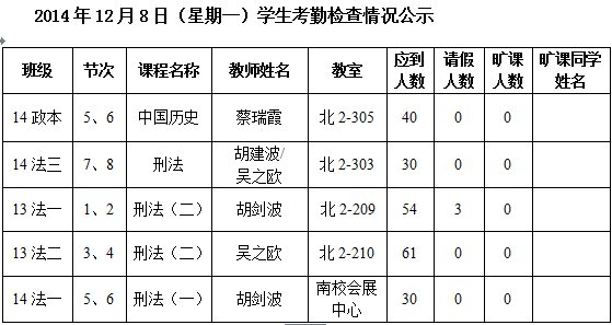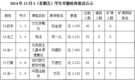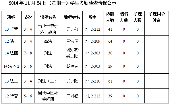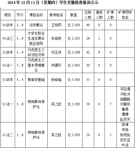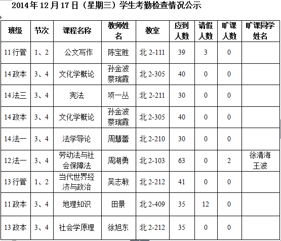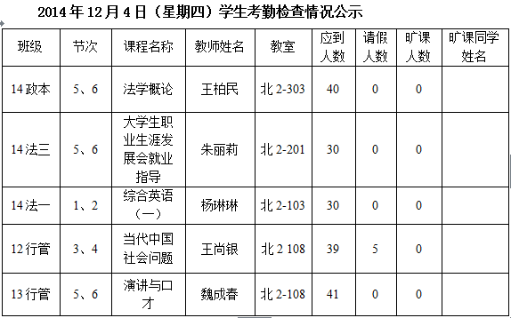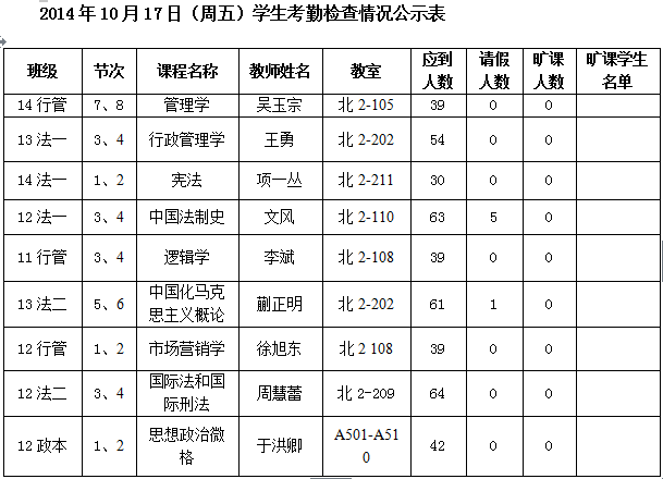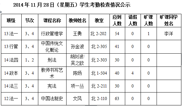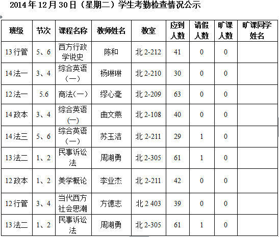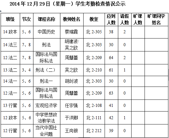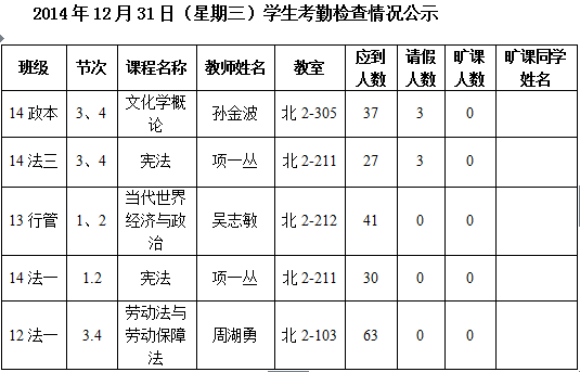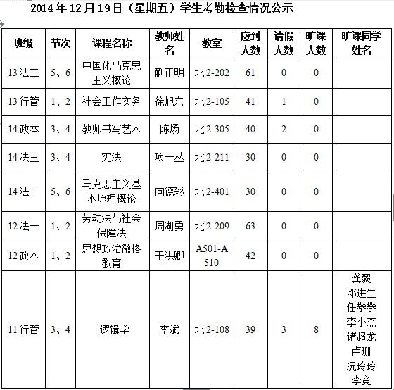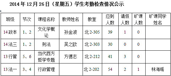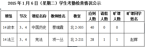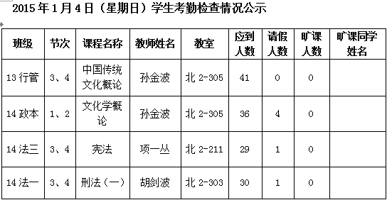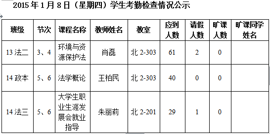 法政学院考勤检查情况公示—1月8日更新