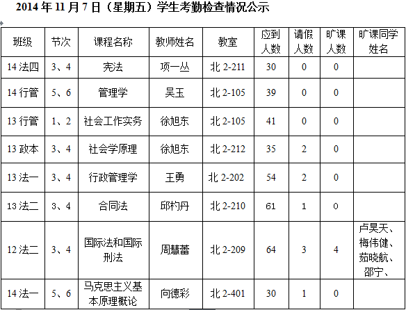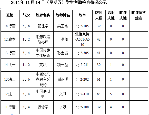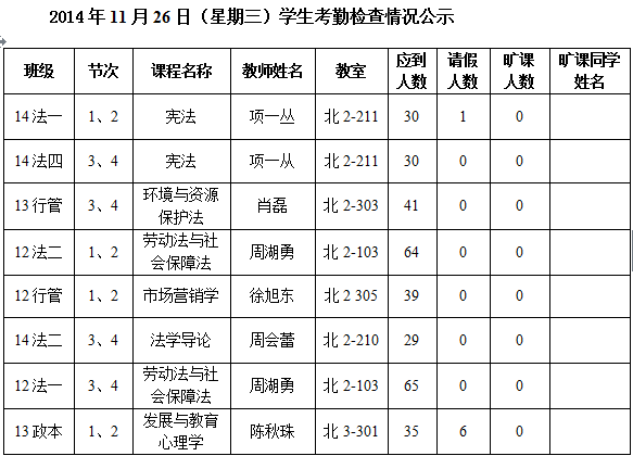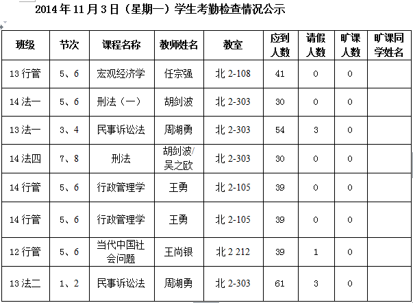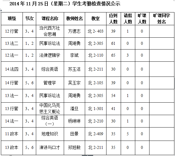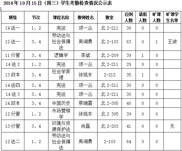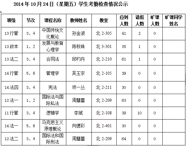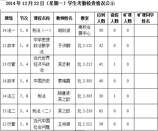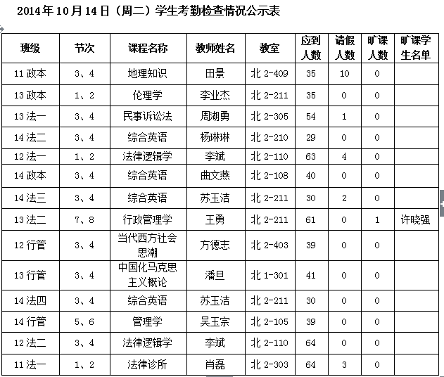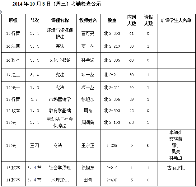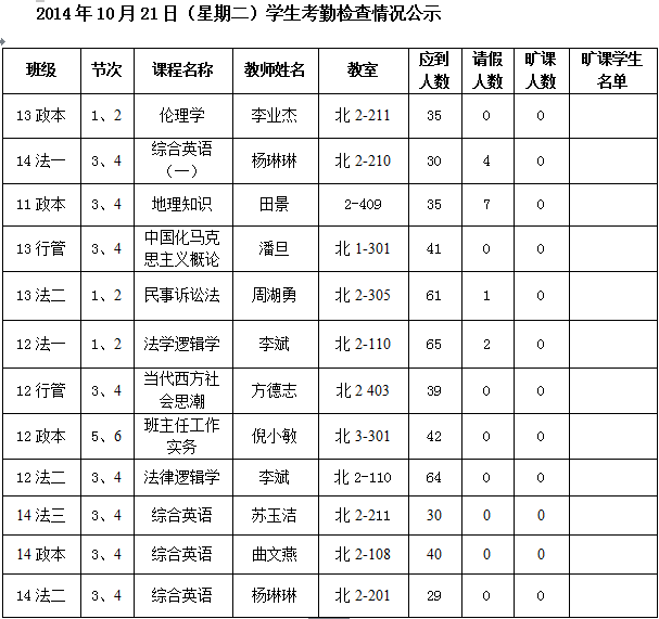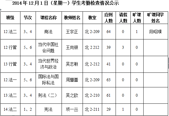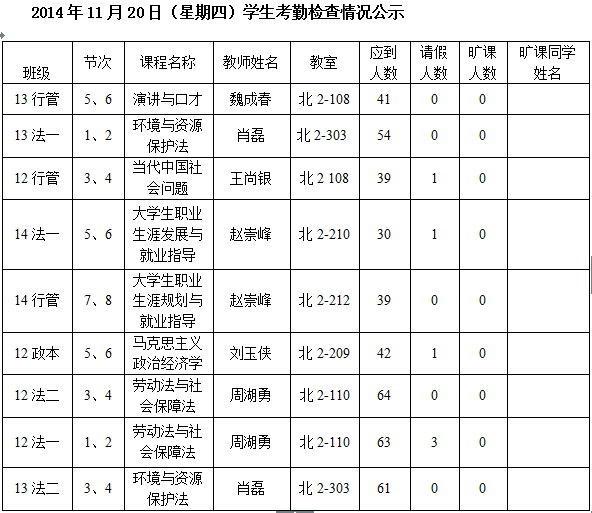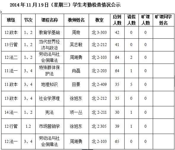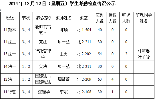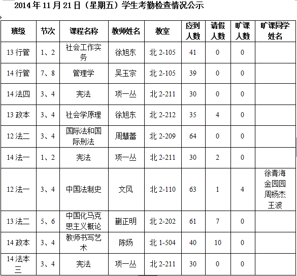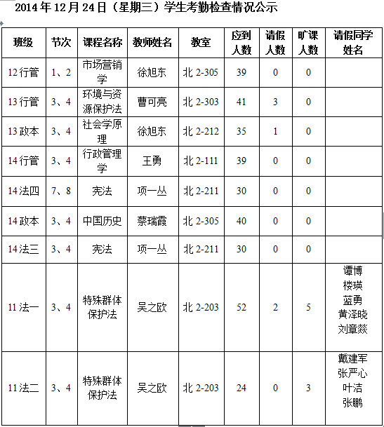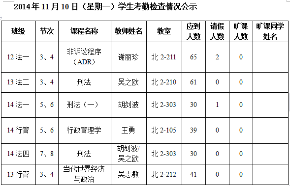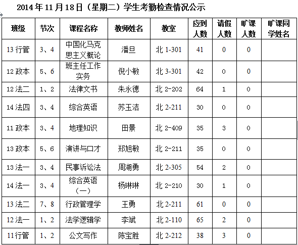 法政学院考勤检查情况公示—1月8日更新