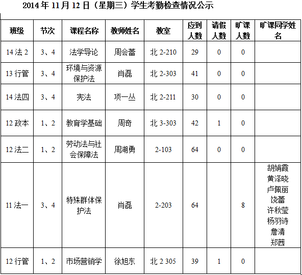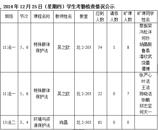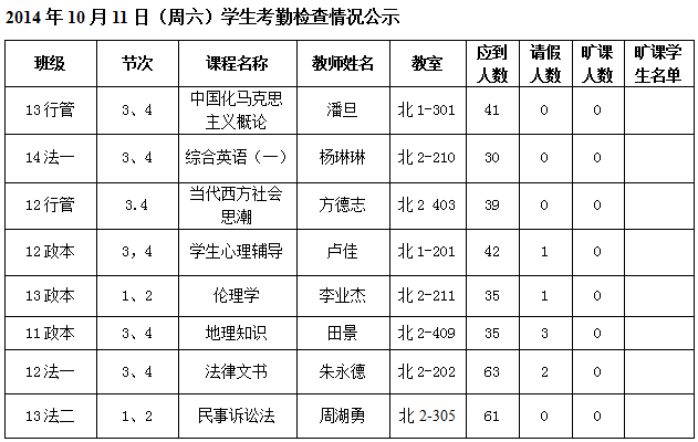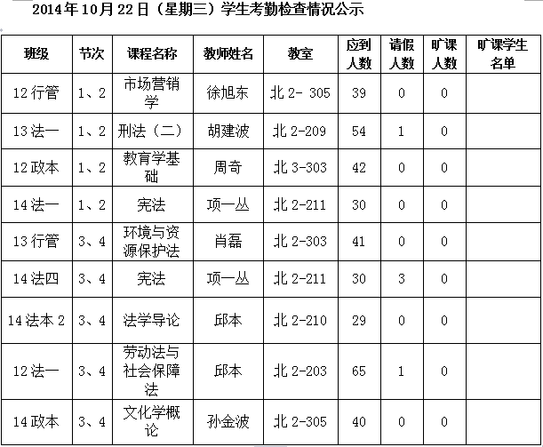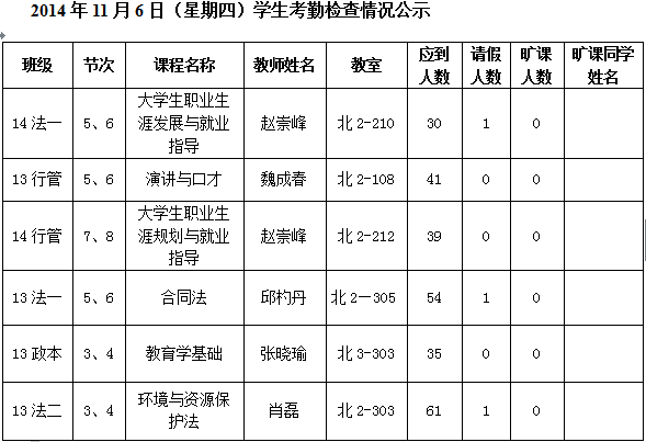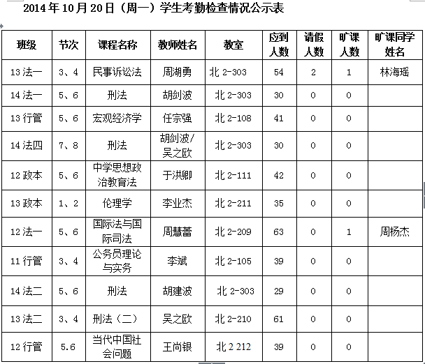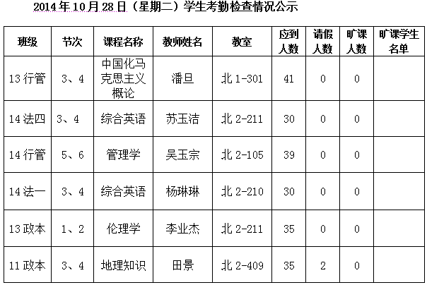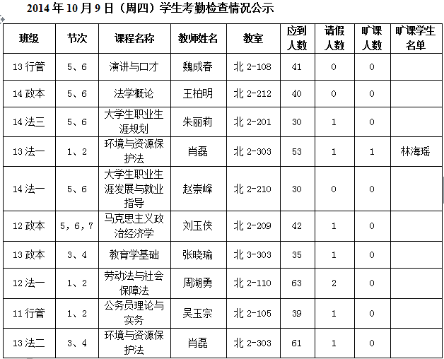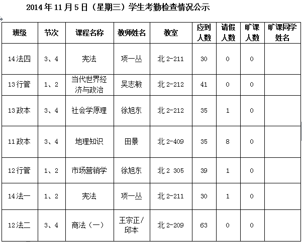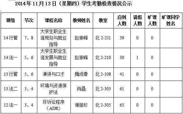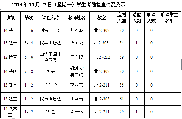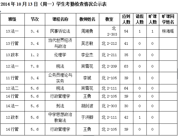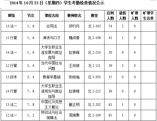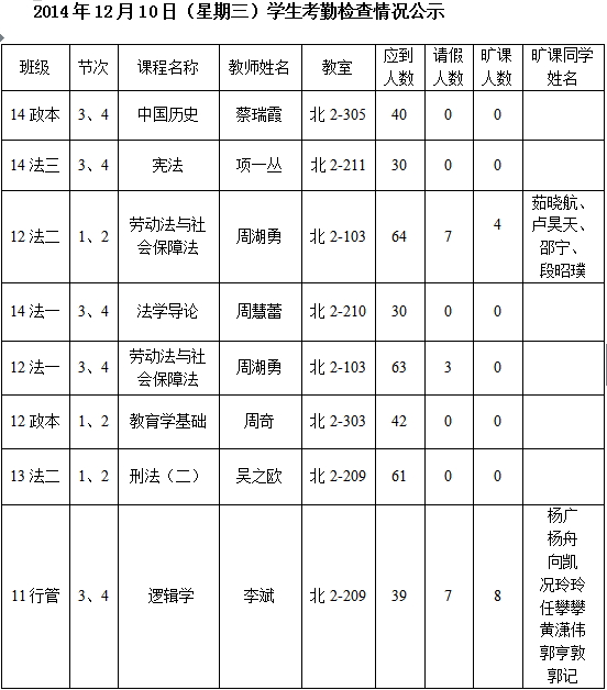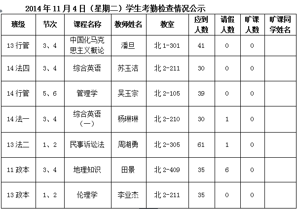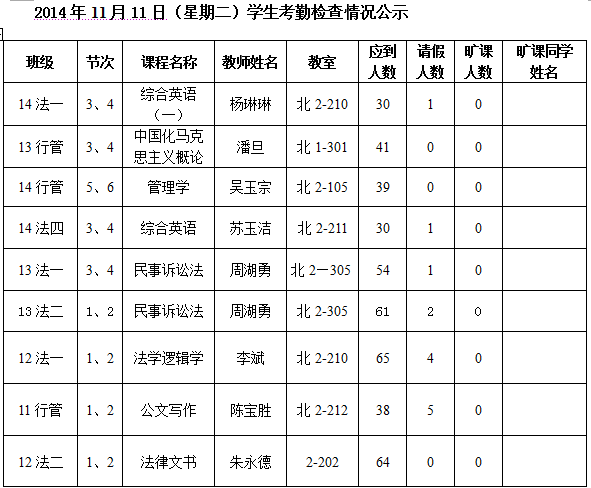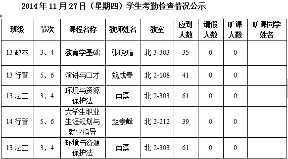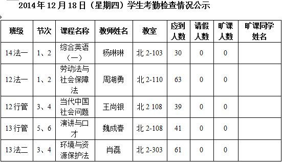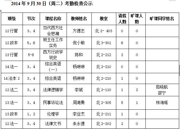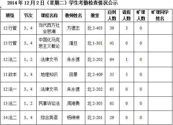法政学院考勤检查情况公示—1月8日更新