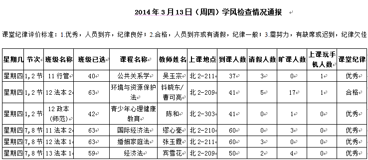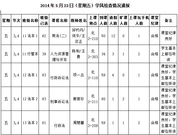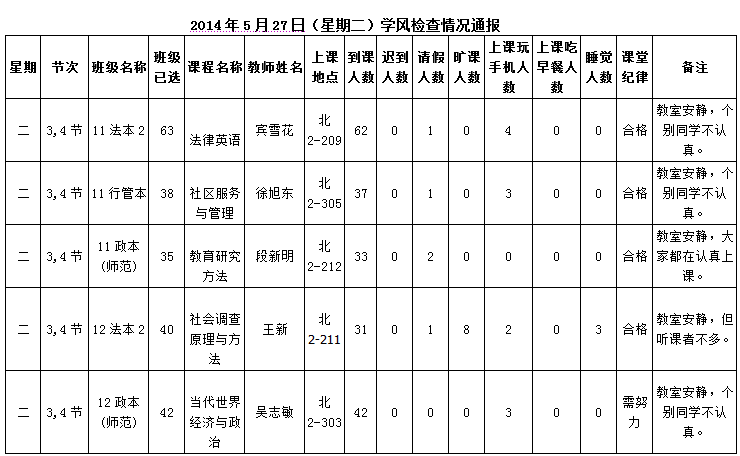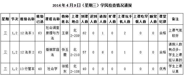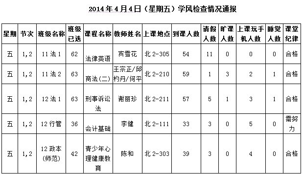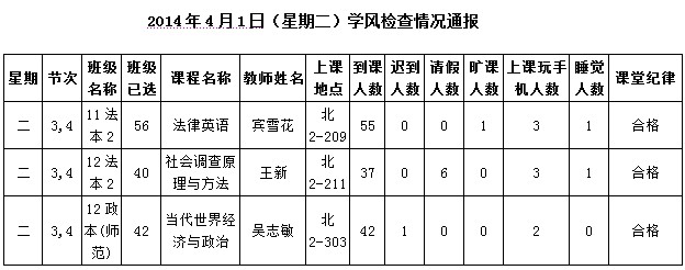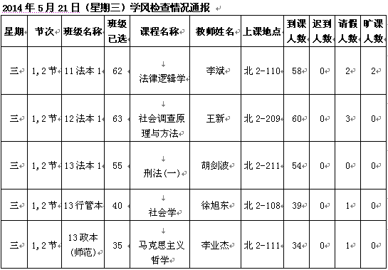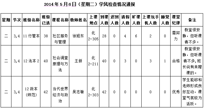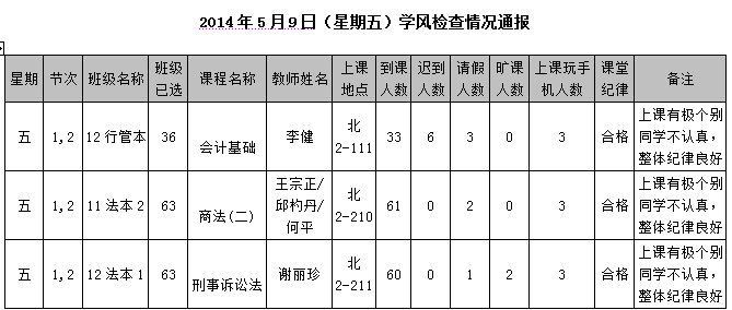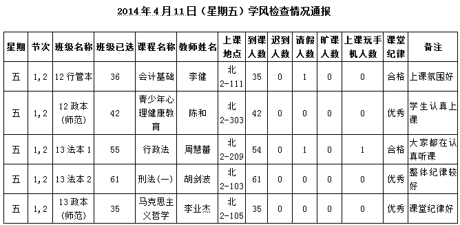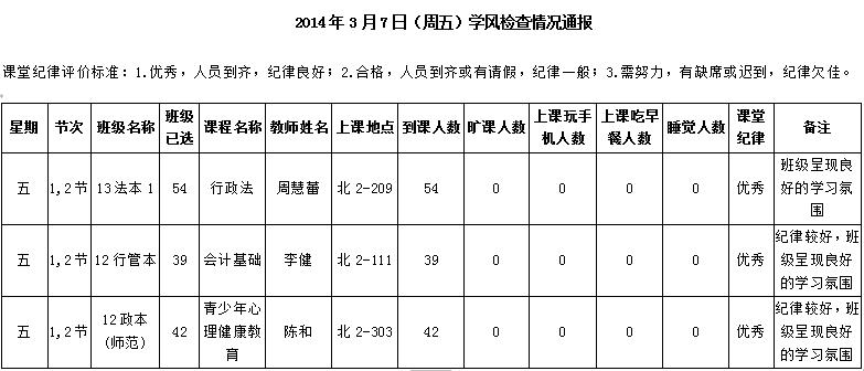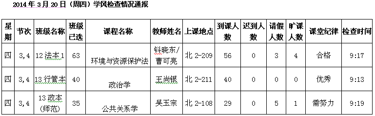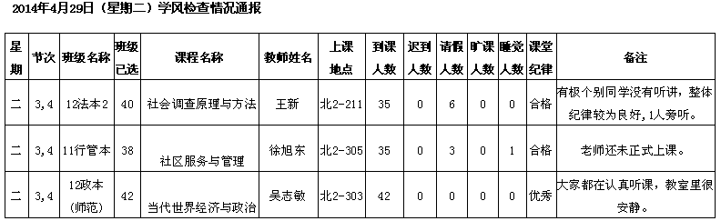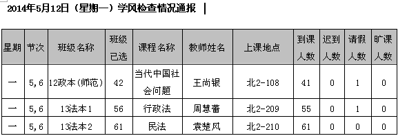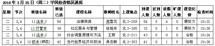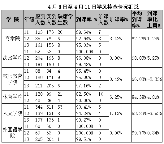 学生处每天派出人员不定时检查学生出勤,并将结果公布
