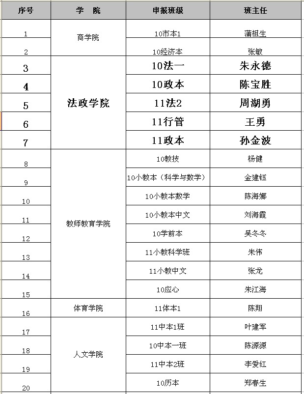 根据体育博彩 2012/2013学年"优良学风班"申报工作的通知要求,经班级申报、学院初审、学生处审核、学校公示,决定对10市本1班等62个班级进行立项,现将结果予以公布。请各学院对照创建方案和目标,广泛动员每一位学生积极参与到优良学风班的创建中来,确保立项目标的实现。立项班级的培育期为一年,学校将于下学年初从通过验收的立项班级中择优产生体育博彩 2012/2013学年"优良学风班",此次法政学院共有5个班级立项。