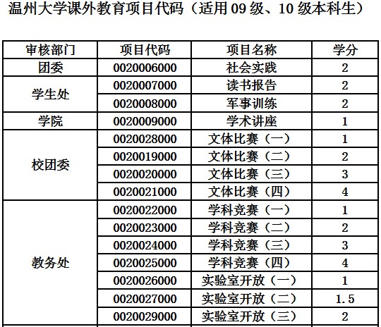 由学校、学院统一组织的读书报告、军事训练、社会实践、学科竞赛、实验室开放项目等项目,不需要学生本人填表申请,由学院统一上报。