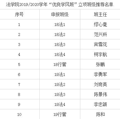 根据体育博彩 2019/2020学年“优良学风班”立项申报工作的通知要求,经班级申报、学院初步审核,现决定对18法学1班等10个班级进行立项推荐,现将结果予以公布。